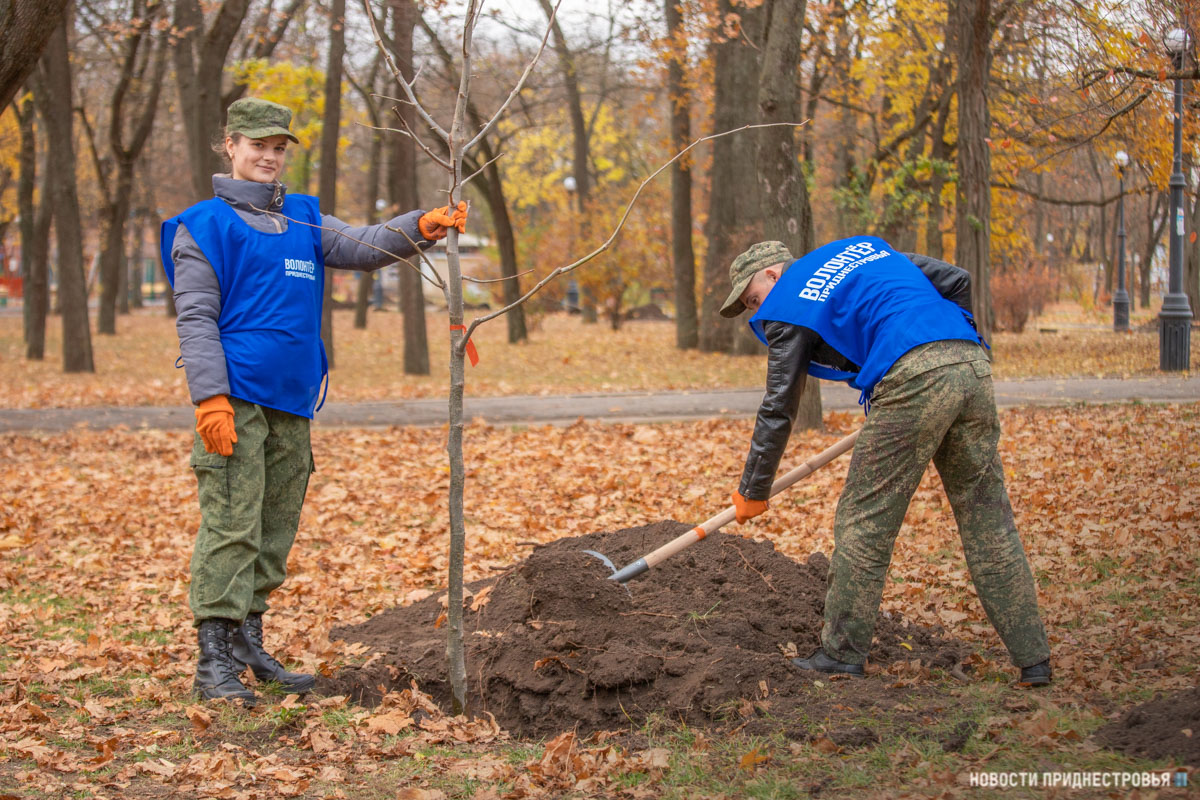Координатор «Волонтёров Победы» в ПМР Евгений Назаренко уже высадил не одно дерево, а вот в парке «Победа» это первое.