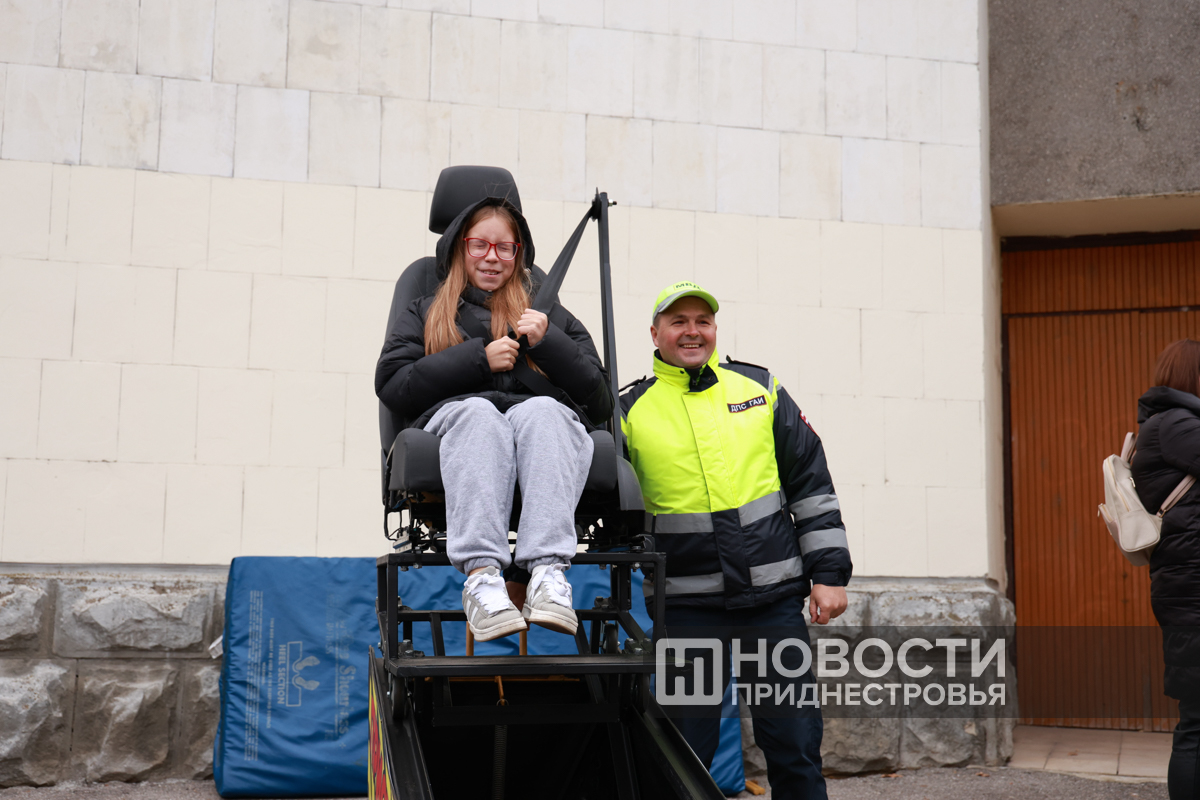 Тренажёр пропагандирует использование ремня безопасности. С его помощью можно прочувствовать, что происходит с водителем и пассажиром на переднем сиденье в момент ДТП. По легенде, автомобиль едет со скоростью 40 км/ч. Уже с утра испытали на себе такой «аттракцион» порядка 50-60 человек, сообщает телеграм-канал ИА «Новости Приднестровья».