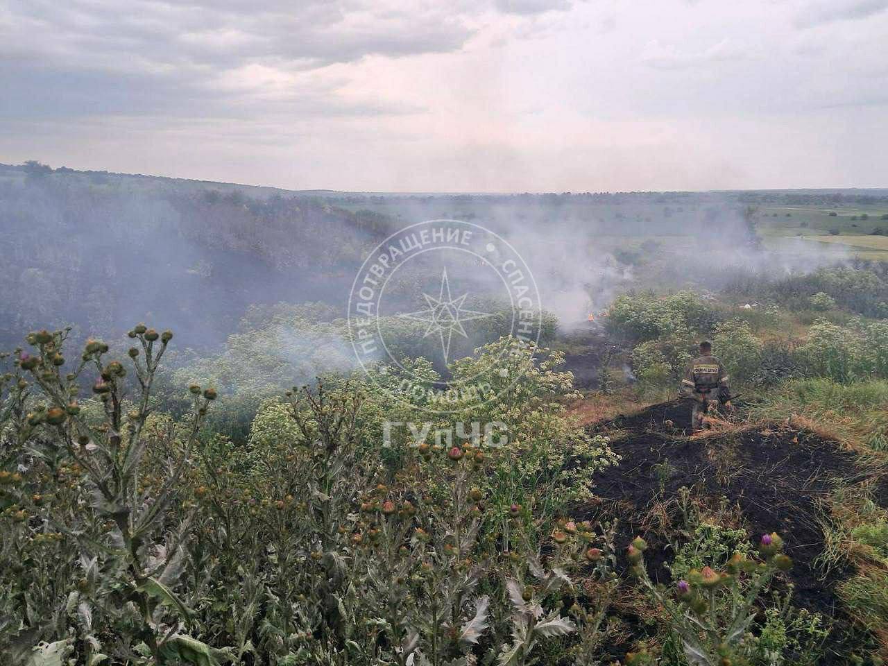 В Григориополе в районе шахты сухая трава горела на площади около 10 гектаров.
