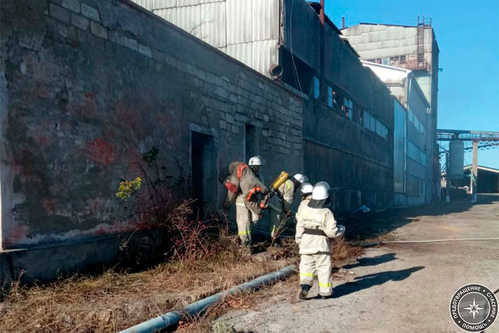 По замыслу учений произошло короткое замыкание в помещении архива во время сварочных работ