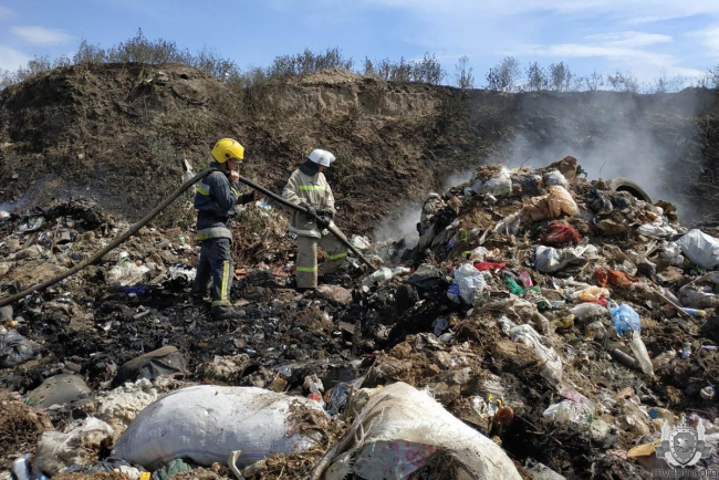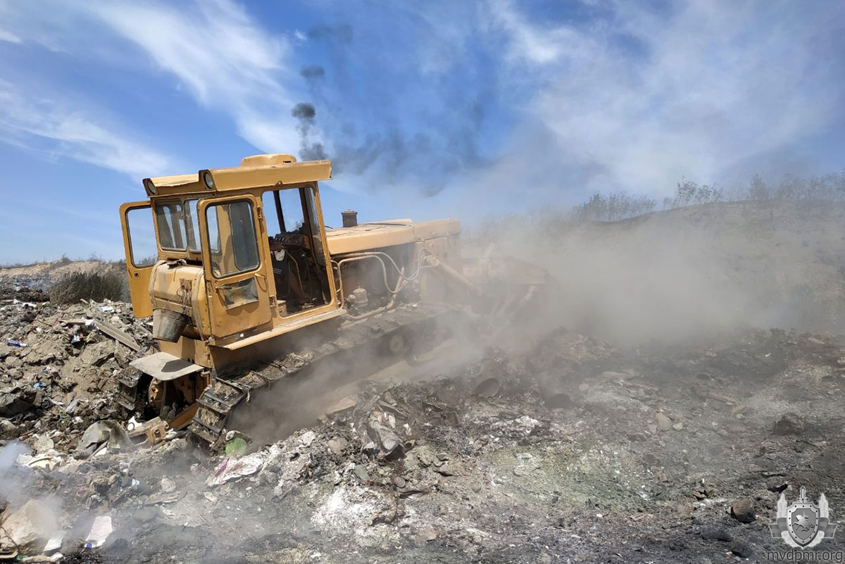 Ночью мусор продолжал тлеть и наутро воспламенился снова. Свалку продолжают тушить водой и засыпать землей. На месте происшествия задействована землеройная спецтехника.