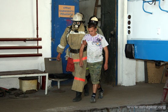 Проведя развертывание, спасатели подключились к пожарному гидранту, после чего огнеборцы звена газодымозащиты в противогазах вошли внутрь помещения и заняли боевую позицию на месте предполагаемого очага возгорания. Во время тушения огня стало известно, что один из рабочих, надышавшись продуктами горения, остался в помещении. Пострадавшего обнаружили и вывели на улицу. Условный пожар площадью 15 кв. м был ликвидирован в течение 10 минут.