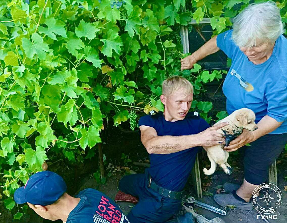 Пожарные спасли щенят из канализационной ямы