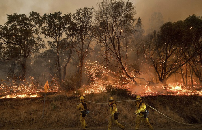 По словам представителя калифорнийского департамента лесного хозяйства, огонь бушует на площади около 20 кв. км и уничтожил уже по меньшей мере 10 построек.