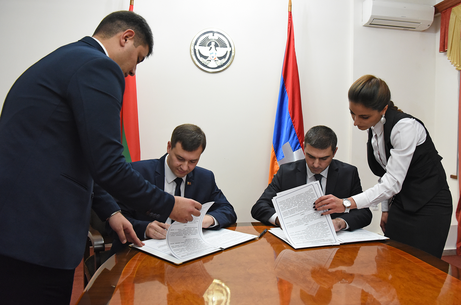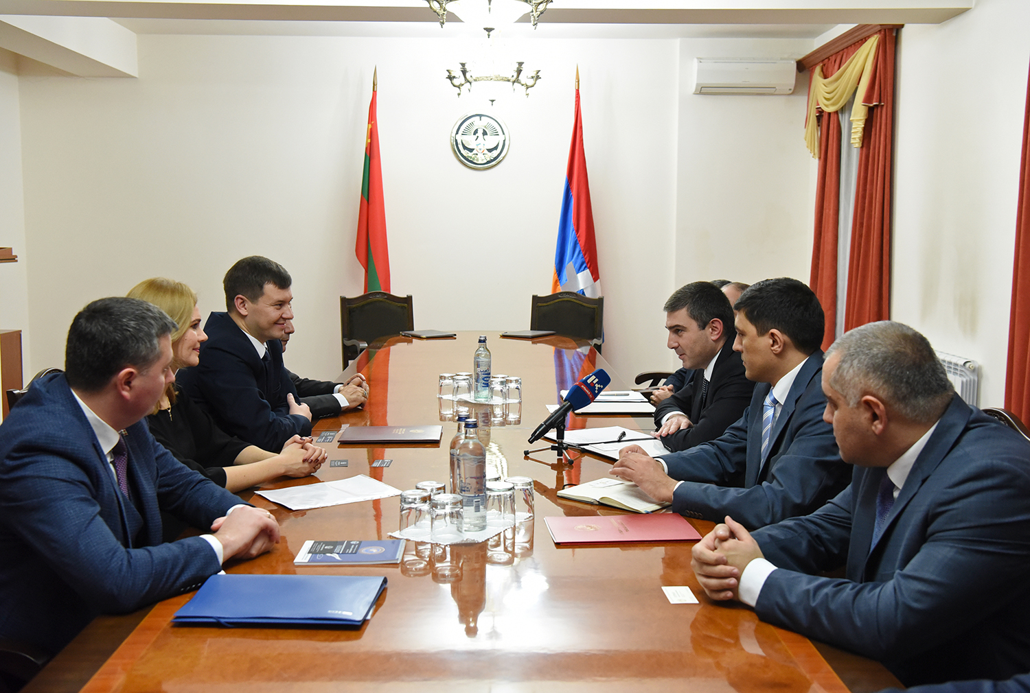 В рамках программы пребывания зампред Правительства ПМР провел встречу в столице Арцаха – Степанакерте – с Государственным министром НКР. По ее окончании состоялась церемония подписания соглашения между правительствами двух республик. Документ, который скрепили подписями Алексей Цуркан и Григорий Мартиросян, предусматривает взаимное учреждение торговых представительств.