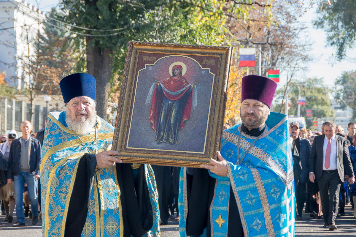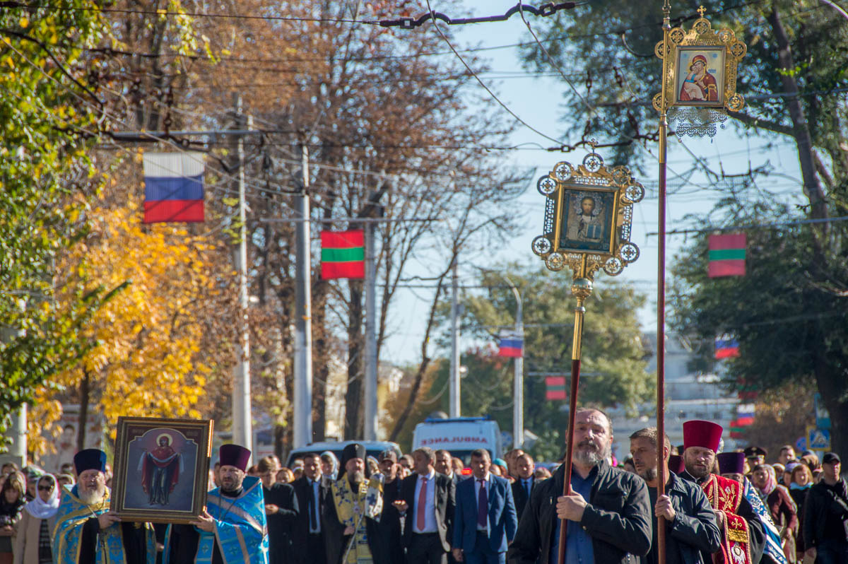Ранним утром в Покровской церкви прошла Божественная литургия. Её провел архиепископ Тираспольский и Дубоссарский Савва. Затем верующие прошли крестным ходом от храма до сквера Дворца культуры. В числе участников мероприятия – глава Тирасполя Олег Довгопол и спикер парламента Александр Щерба.