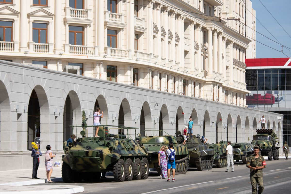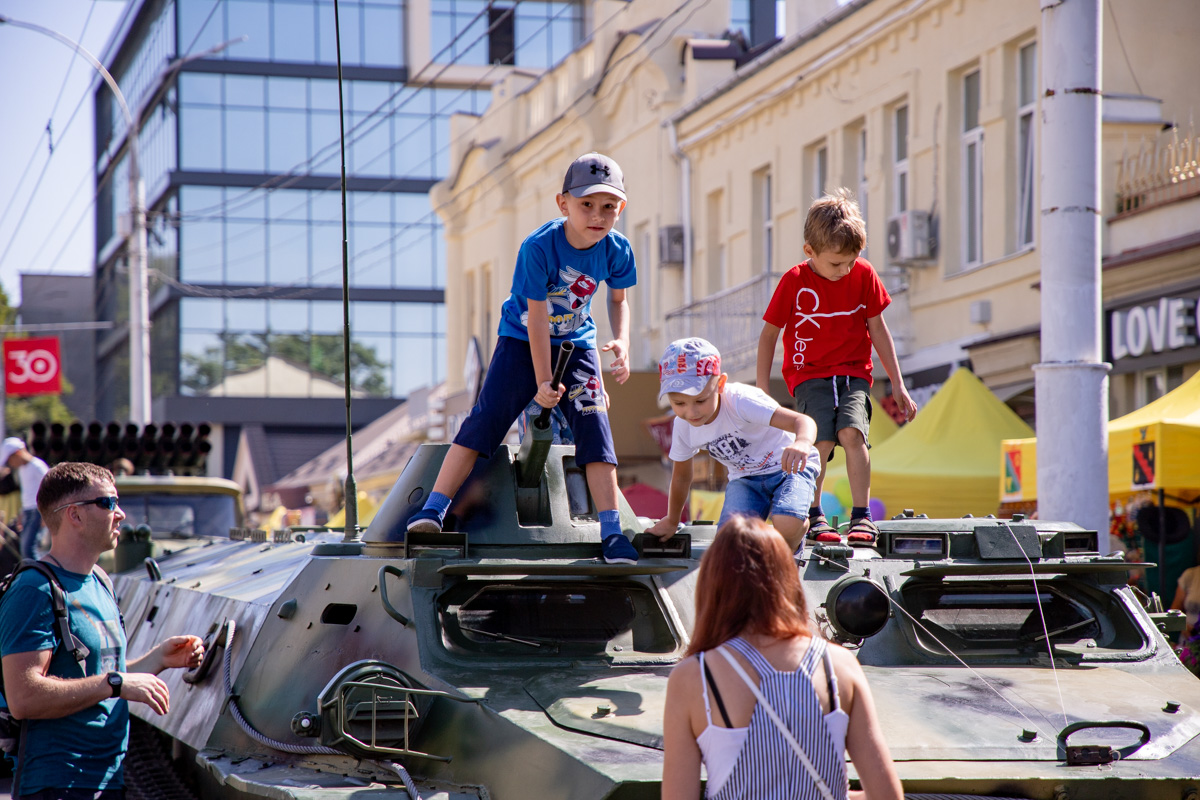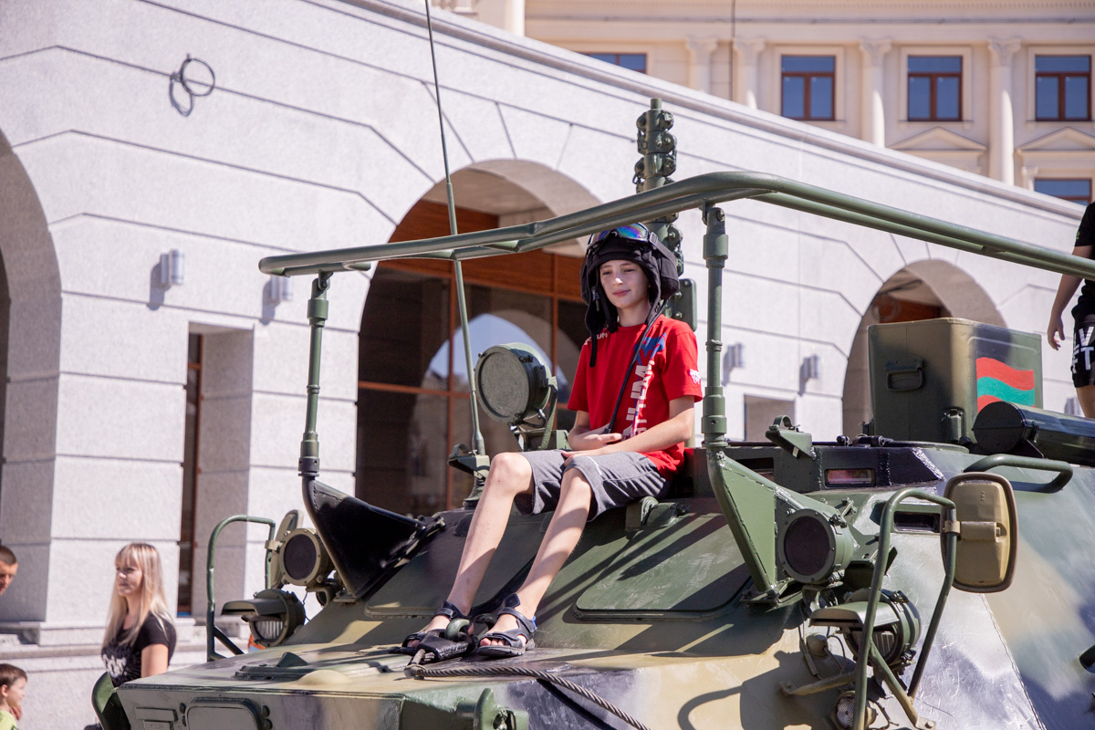 Детям тоже было чем заняться. На пересечении улиц Луначарского и Шевченко расположилась военная техника Министерства обороны. Десять единиц боевых машин будут там находиться вплоть до утра следующего дня.