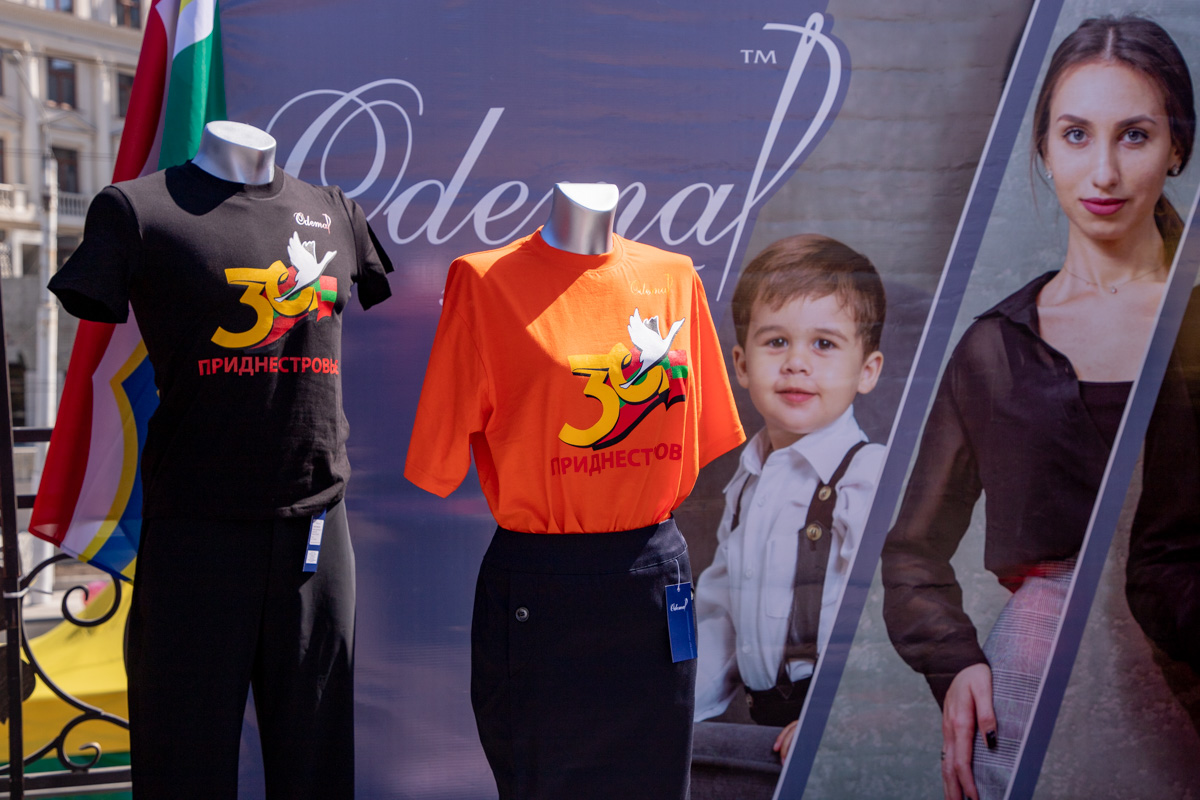 Директор ЗАО «Одема» Илья Шойхет отметил, что к 30-летию республики предприятие подготовило специальную продукцию: футболки с логотипом Приднестровья и изображением герба города.