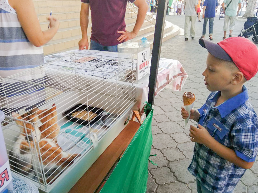 Гуляя по улице 25 Октября, нельзя было не заметить живой уголок. Представители организации «Зоотера» пытались найти заботливых хозяев своим подопечным: лохматым и дружелюбным щенкам и котятам.