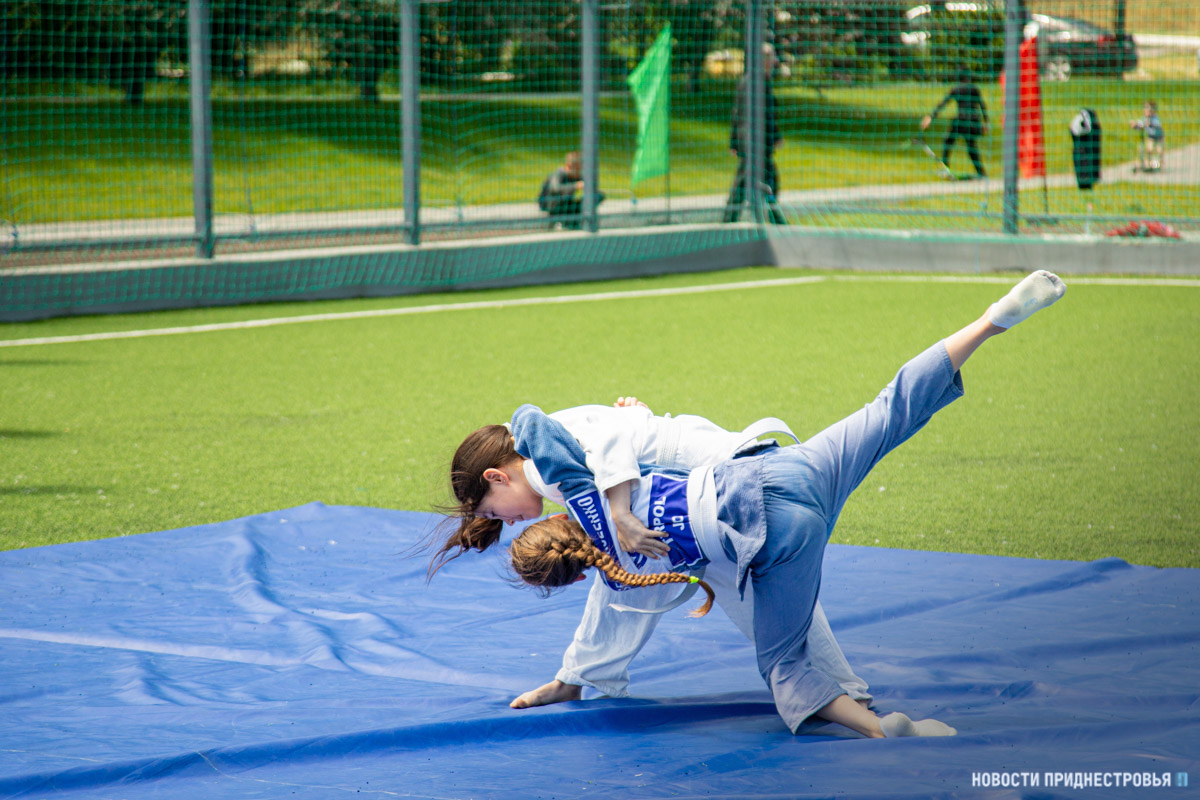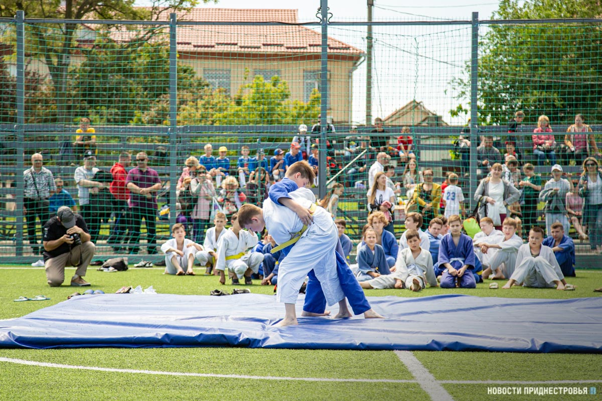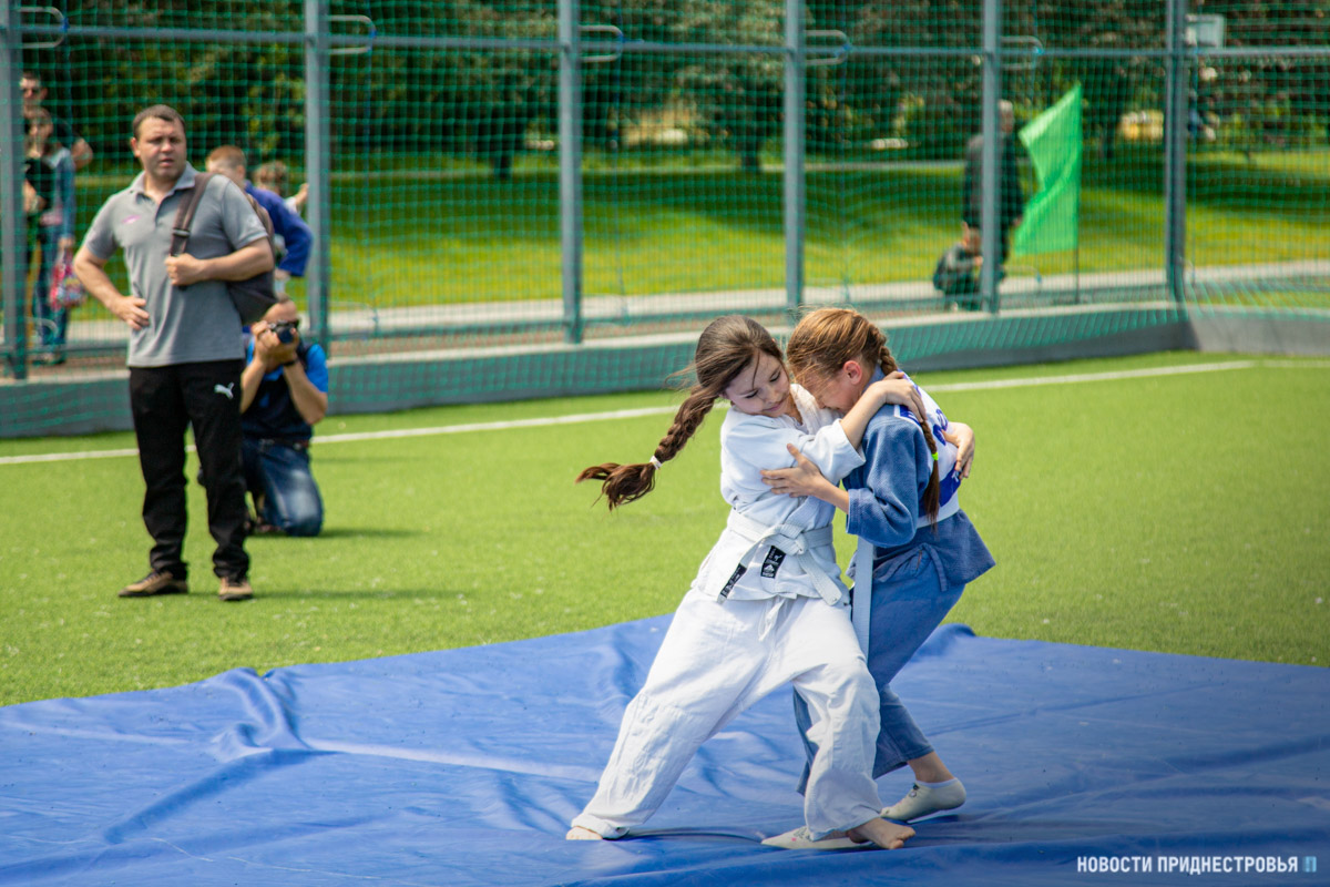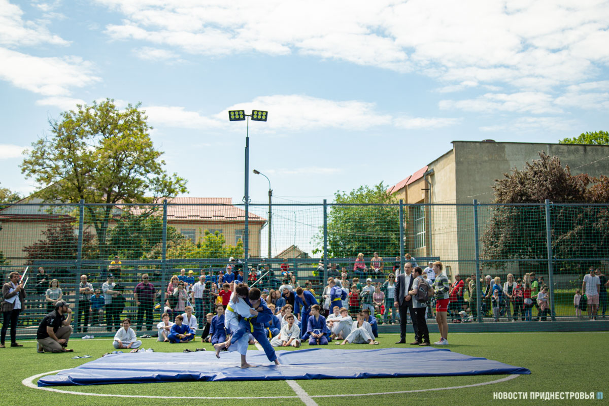 На спортивной площадке прошли соревнования и показательные выступления по различным видам спорта. Началось всё со спортивно-игровой программы. На футбольном поле провели «Солнечную зарядку с чемпионом». Затем выступили учащиеся СДЮШОР борьбы и бокса. Своё мастерство продемонстрировали не только мальчики, но и девочки.