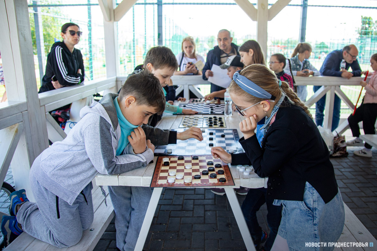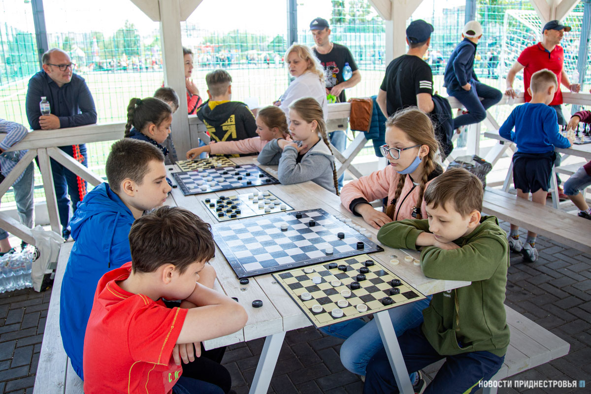 В беседке рядом с футбольным полем провели соревнования по шашкам среди учащихся СДЮШОР № 3.