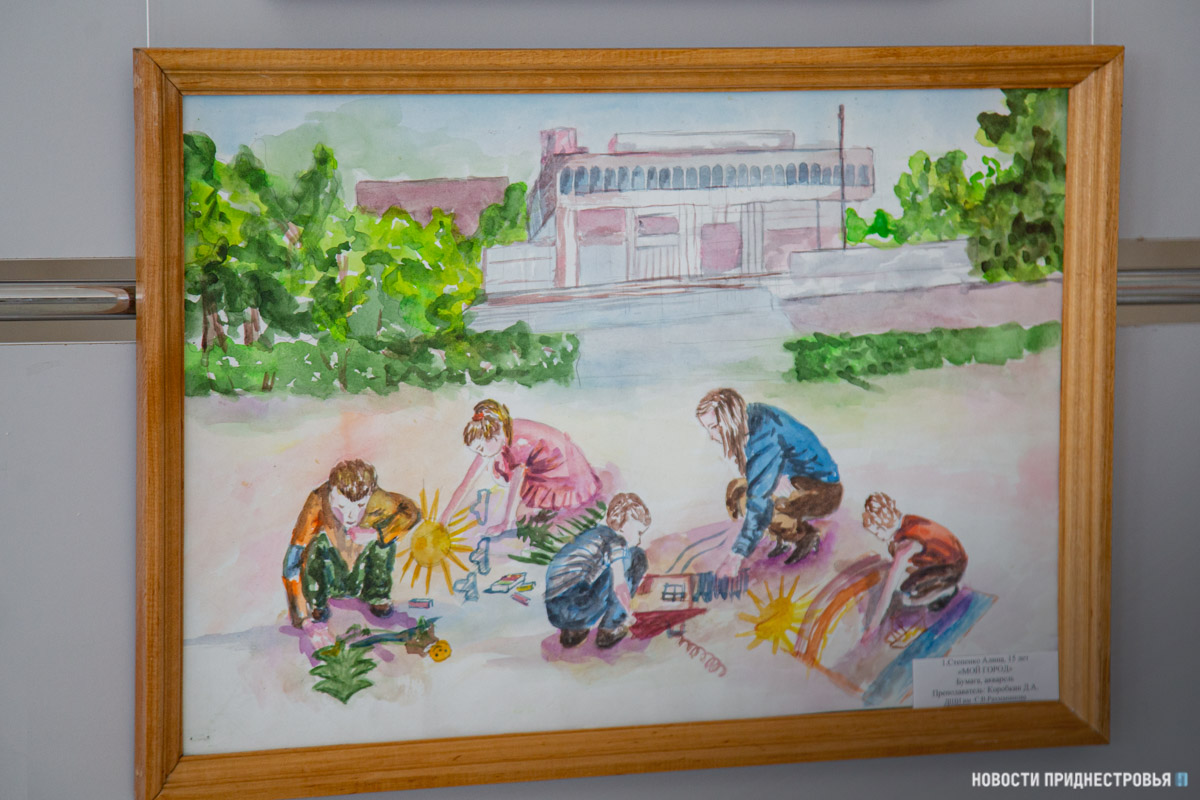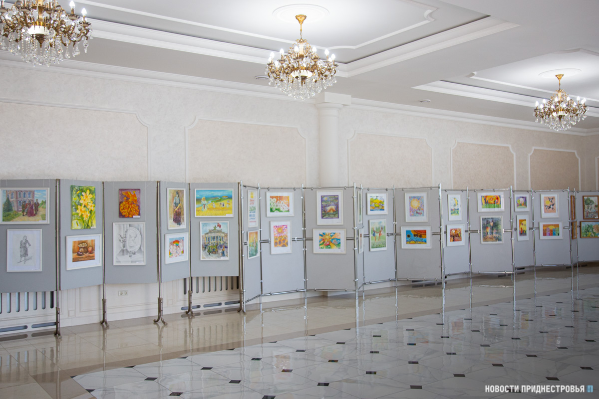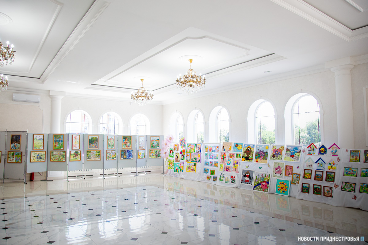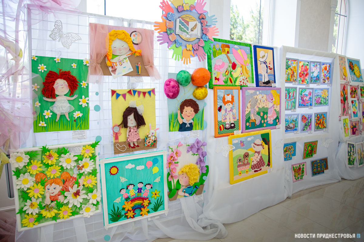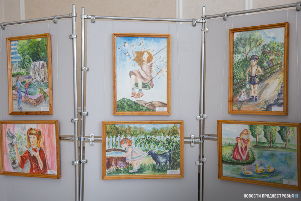 Также представлены выставки рисунков учащихся Детской художественной школы им. А. Ф. Фойницкого и детской Школы искусств им. С. В. Рахманинова. На рисунках - детские забавы, различные праздники, которые проходили в ПМР, летние пейзажи и многое другое.