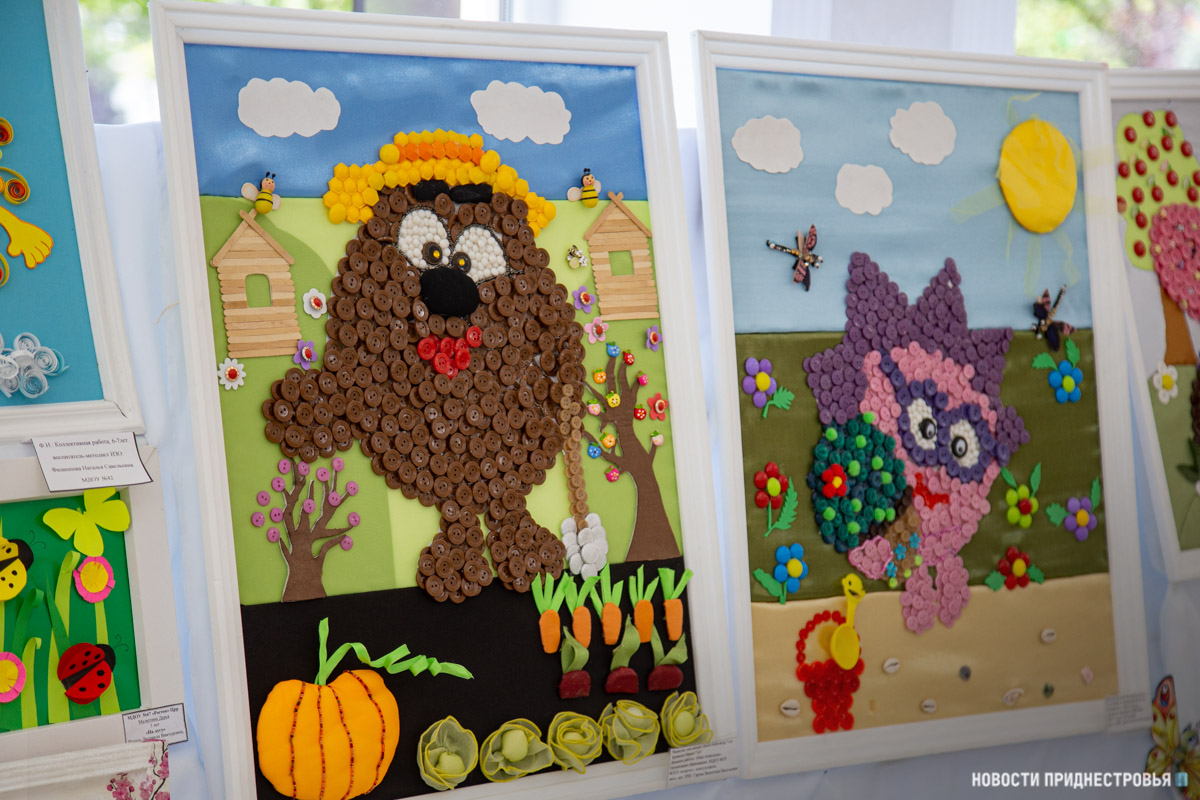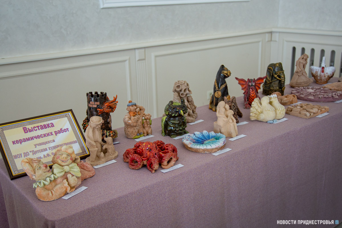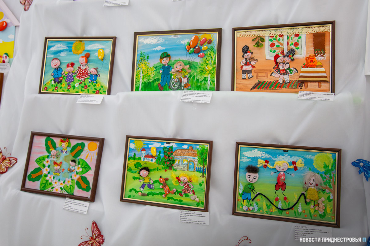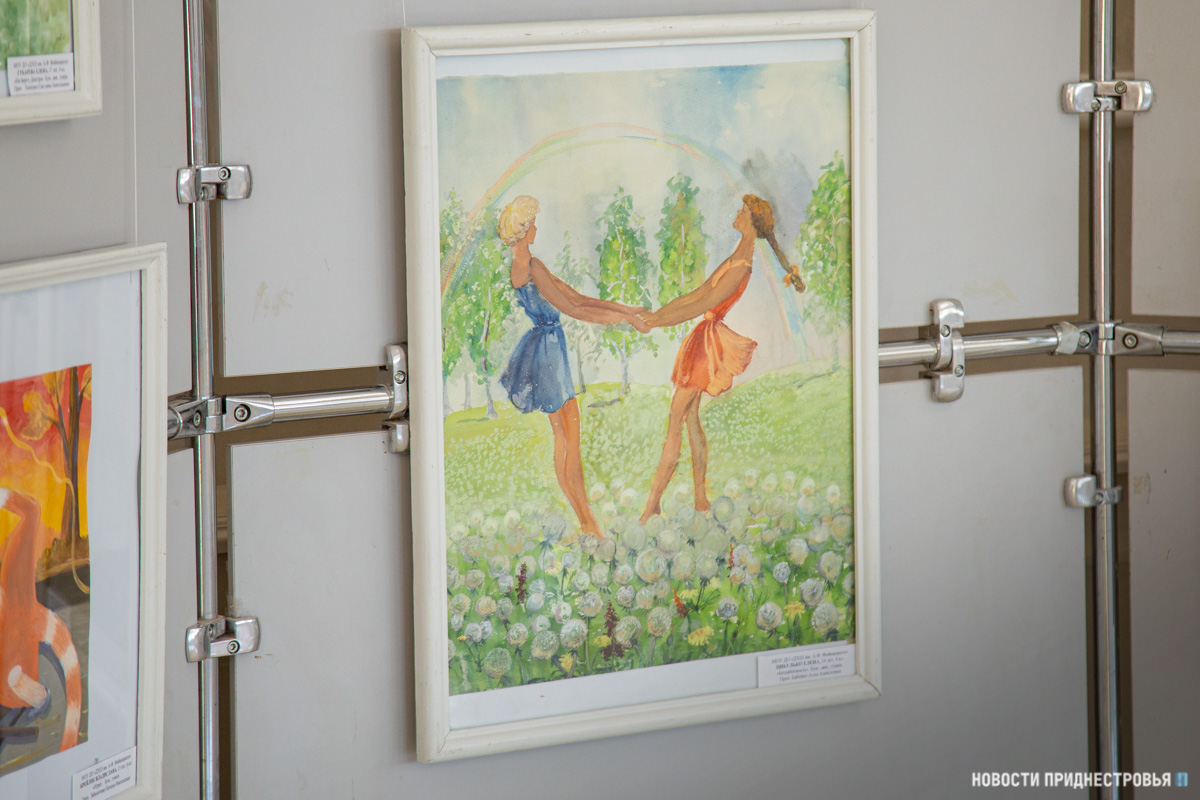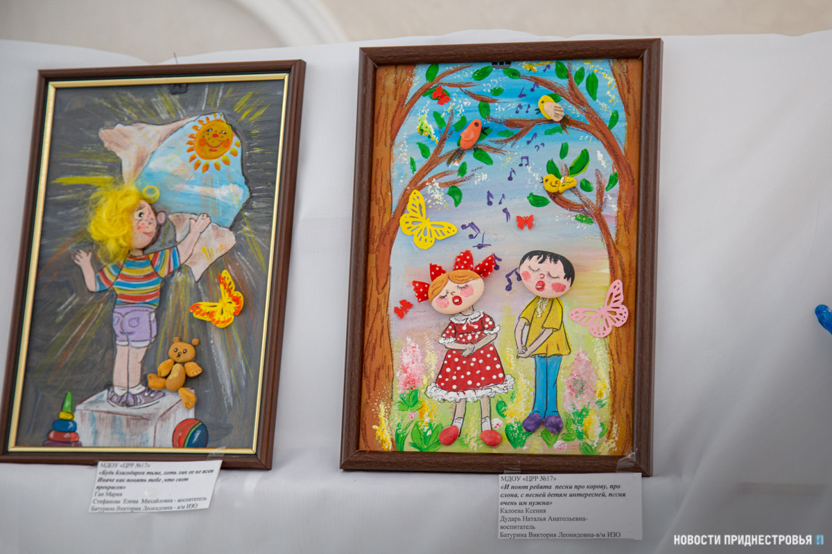 Также представлены выставки рисунков учащихся Детской художественной школы им. А. Ф. Фойницкого и детской Школы искусств им. С. В. Рахманинова. На рисунках - детские забавы, различные праздники, которые проходили в ПМР, летние пейзажи и многое другое.