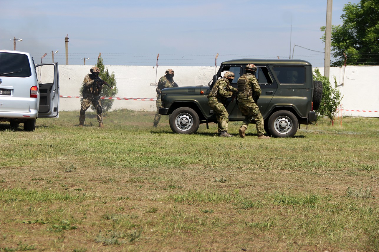 Каждые полтора часа свои умения демонстрировали стражи рубежей и группы антитеррора. По легенде одного из показательных выступлений, пограничники со служебными собаками пресекают попытки незаконного проникновения на территорию республики, далее зрители становятся очевидцами проведения контртеррористической операции: группа захвата в считанные минуты обезвреживает преступников.