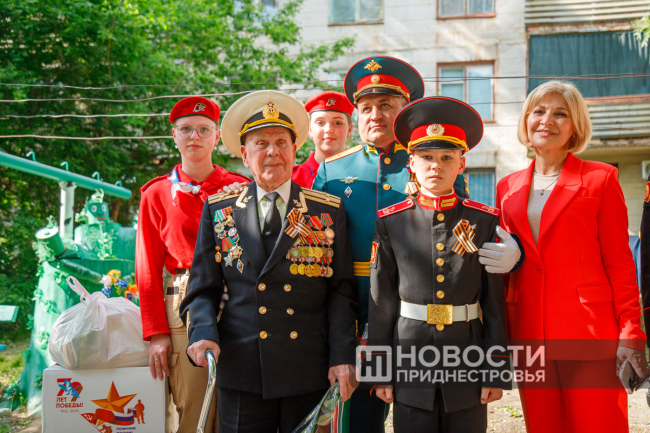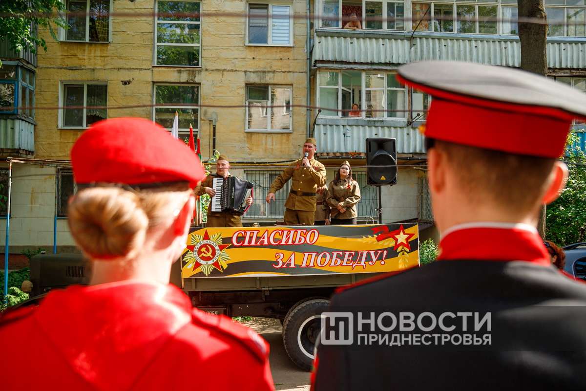 Тирасполь, 8 мая. /Новости Приднестровья/. В Тирасполе поздравляют с наступающим Днём Победы ветеранов Великой Отечественной войны. Руководство города и военнослужащие Оперативной группы российских войск в Приднестровье вместе с юнармейцами и суворовцами приезжают с концертом на дом.