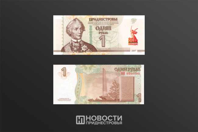 Тирасполь, 24 апреля. /Новости Приднестровья/. Приднестровский республиканский банк ввел в обращение памятные банкноты «80-летие Победы в Великой Отечественной войне» номиналом 1 рубль. Их формат, общий дизайн и технические характеристики соответствуют находящимся в обращении денежных знаков номиналом 1 рубль образца 2007 года модификации 2012 года. В правом поле лицевой стороны памятной банкноты нанесена специальная маркировка в виде изображения скульптуры «Родина-мать зовёт!» и надписей в две строки, разделённых георгиевской лентой, «80» и «ПОБЕДА!».