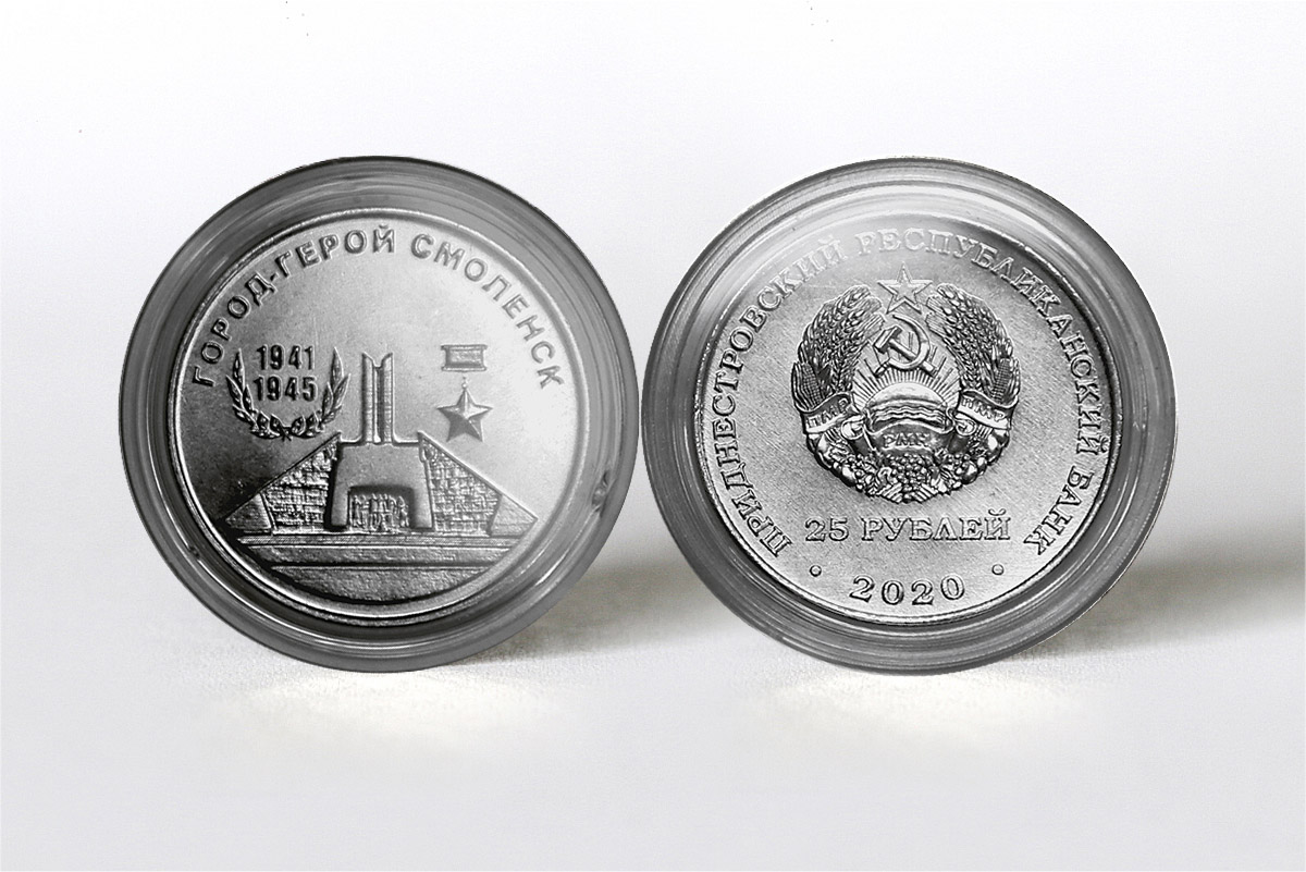 Тирасполь, 12 августа. /Новости Приднестровья/. Приднестровский республиканский банк ввёл в обращение памятные монеты «Город-герой Смоленск» серии «Города-герои в годы Великой Отечественной войны 1941-1945 годов» и «60 лет космическому полёту Белки и Стрелки» серии «Освоение космоса».