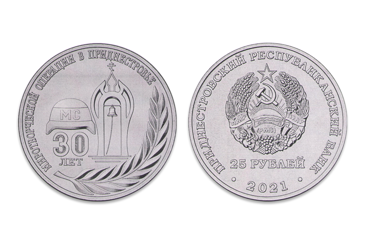 Тирасполь, 26 июля. /Новости Приднестровья/. Приднестровский республиканский банк ввёл в обращение памятные монеты «30 лет миротворческой операции в Приднестровье» из серии «Приднестровье. Ценности, события и лица». Они выпущены в двух вариантах: номиналом 10 и 25 рублей.
