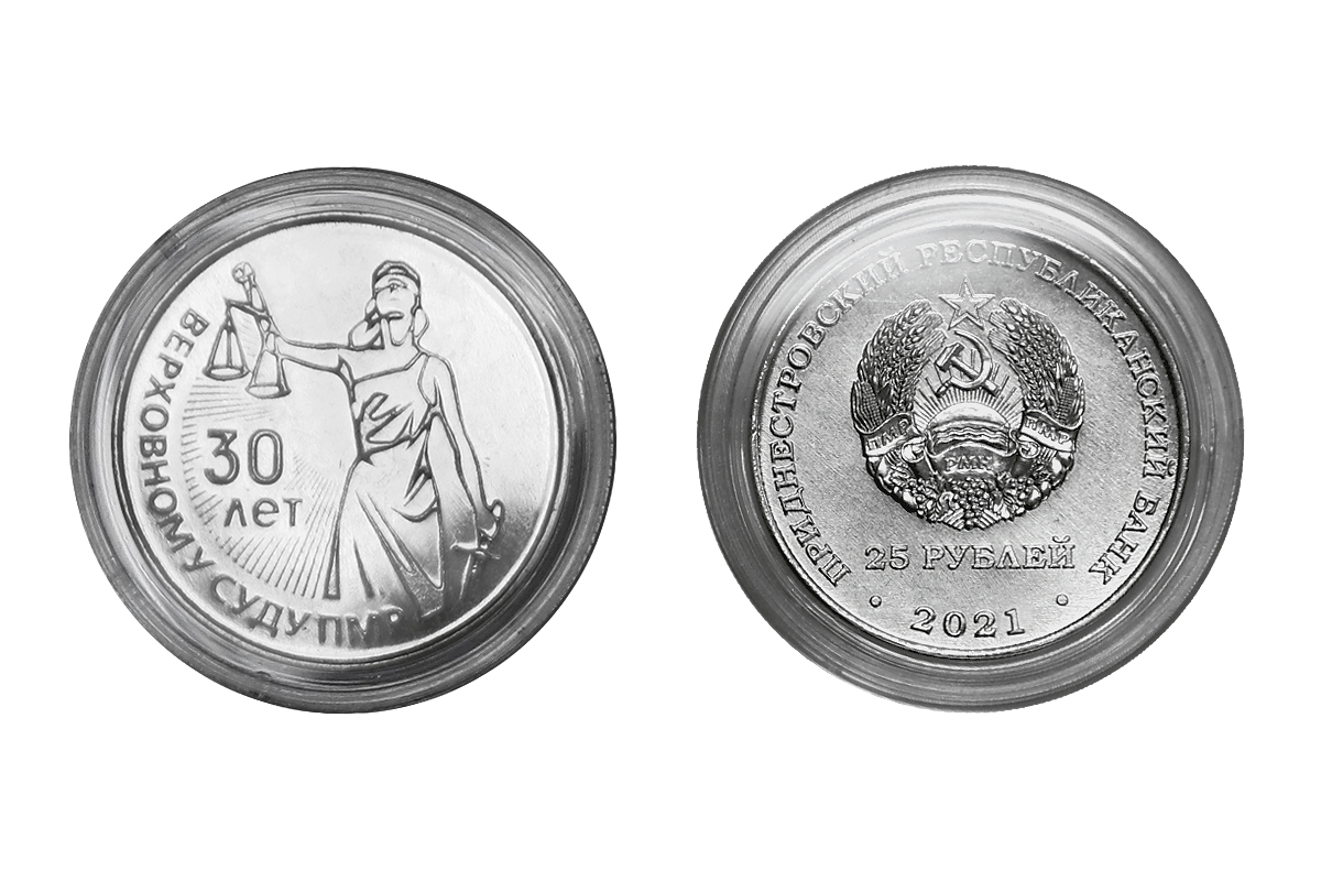 Тирасполь, 11 января. /Новости Приднестровья/. Приднестровский республиканский банк (ПРБ) сообщает о введении в обращение памятных монет «30 лет со дня образования Верховного суда ПМР» серии «Государственность Приднестровья».
