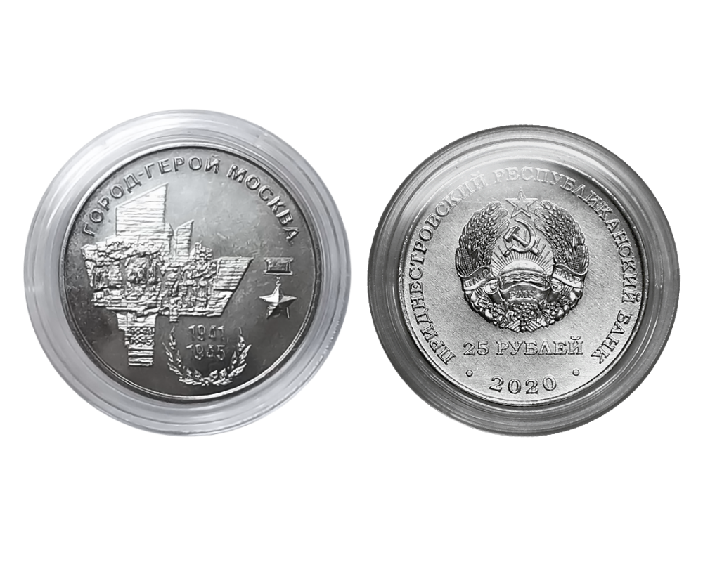Тирасполь, 23 июня. /Новости Приднестровья/. С сегодняшнего дня Приднестровский республиканский банк вводит в обращение памятные монеты из недрагоценных металлов достоинством 25 рублей «Город-герой Москва» серии «Города-герои в годы Великой Отечественной войны 1941-1945 годов», говорится в пресс-релизе Центробанка.