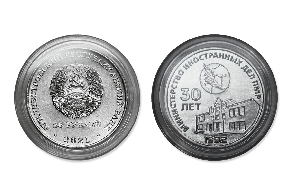 Тирасполь, 27 июня. /Новости Приднестровья/. Приднестровский республиканский банк ввёл в обращение новую монету - «30 лет внешнеполитическому ведомству ПМР» из серии «Государственность Приднестровья».