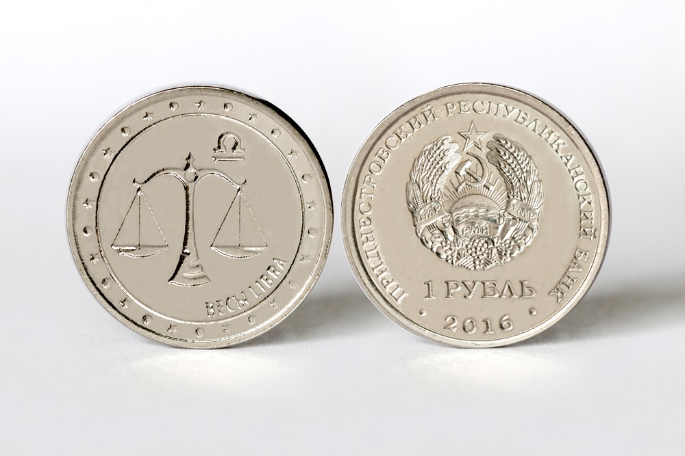 Номинал стальной монеты с никелевым покрытием «Весы» – 1 рубль ПМР, тираж – 50 тысяч штук. Часть памятных монет будет помещена в упаковку-буклет.