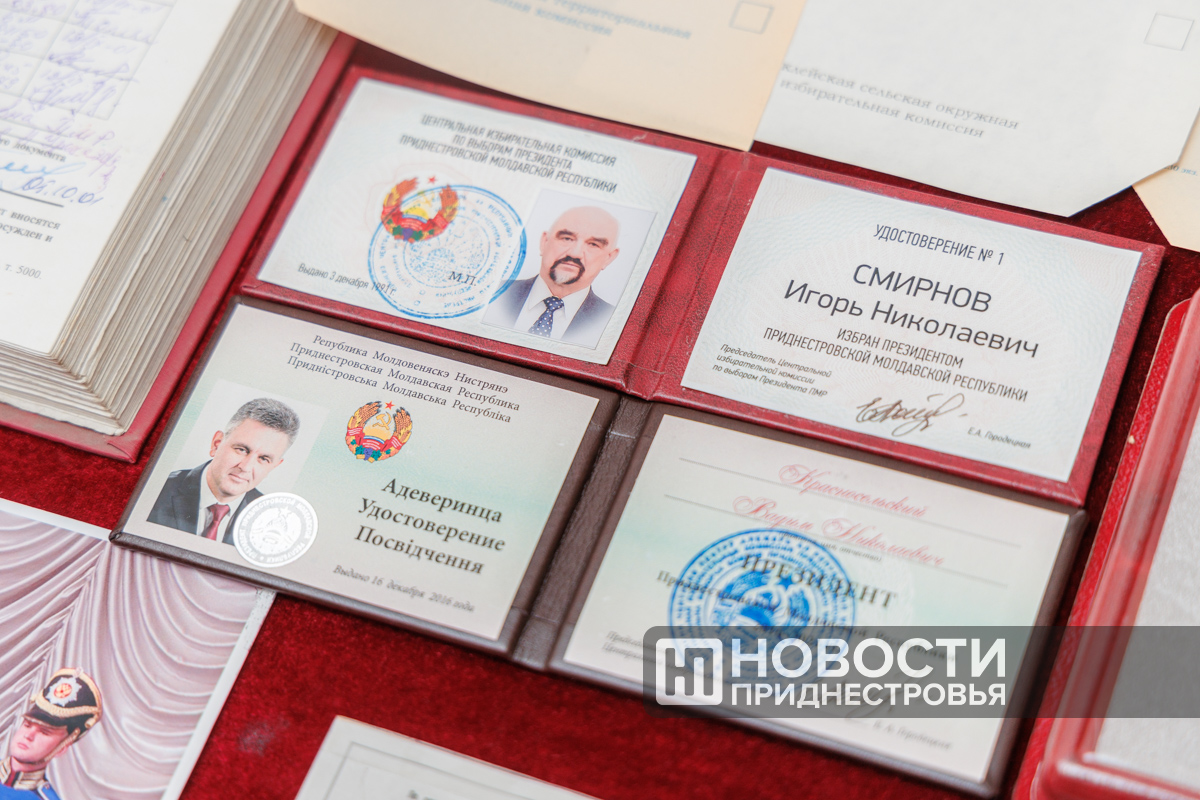 Дополнением к уроку стала развёрнутая в фойе выставка, на которой были представлены акты избирательного законодательства, бюллетени прошлых лет и даже удостоверения президентов ПМР.