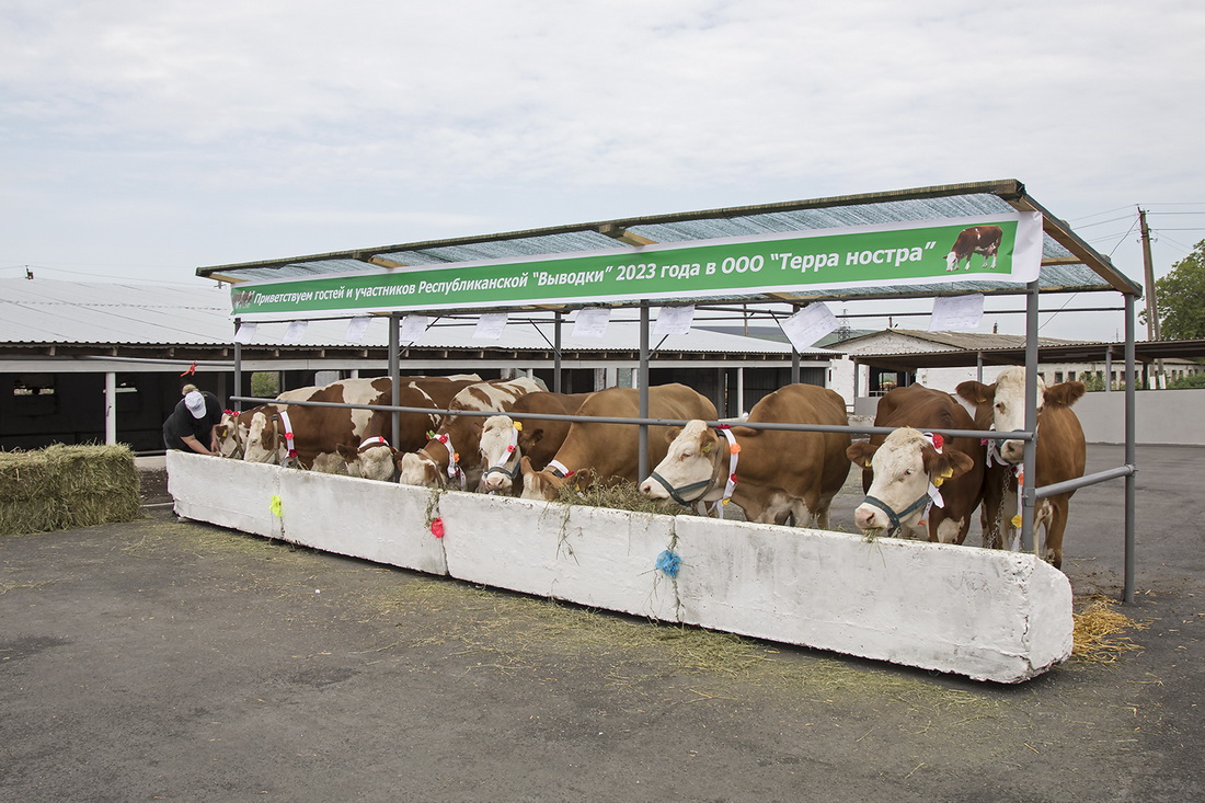 К слову, коровы, представленные на выводке, были закуплены благодаря господдержке в виде субсидий на приобретение нетелей симментальской породы. В 2018 году закупили 28 голов. За прошедшее время хозяйство фермы выросло до 350. Как рассказал журналистам министр сельского хозяйства и природных ресурсов Олег Дилигул, порода является универсальной, она мясо-молочного направления. Животные дают надой высокого качества и в больших объёмах. Это стало определяющим фактором при выборе места проведения мероприятия.