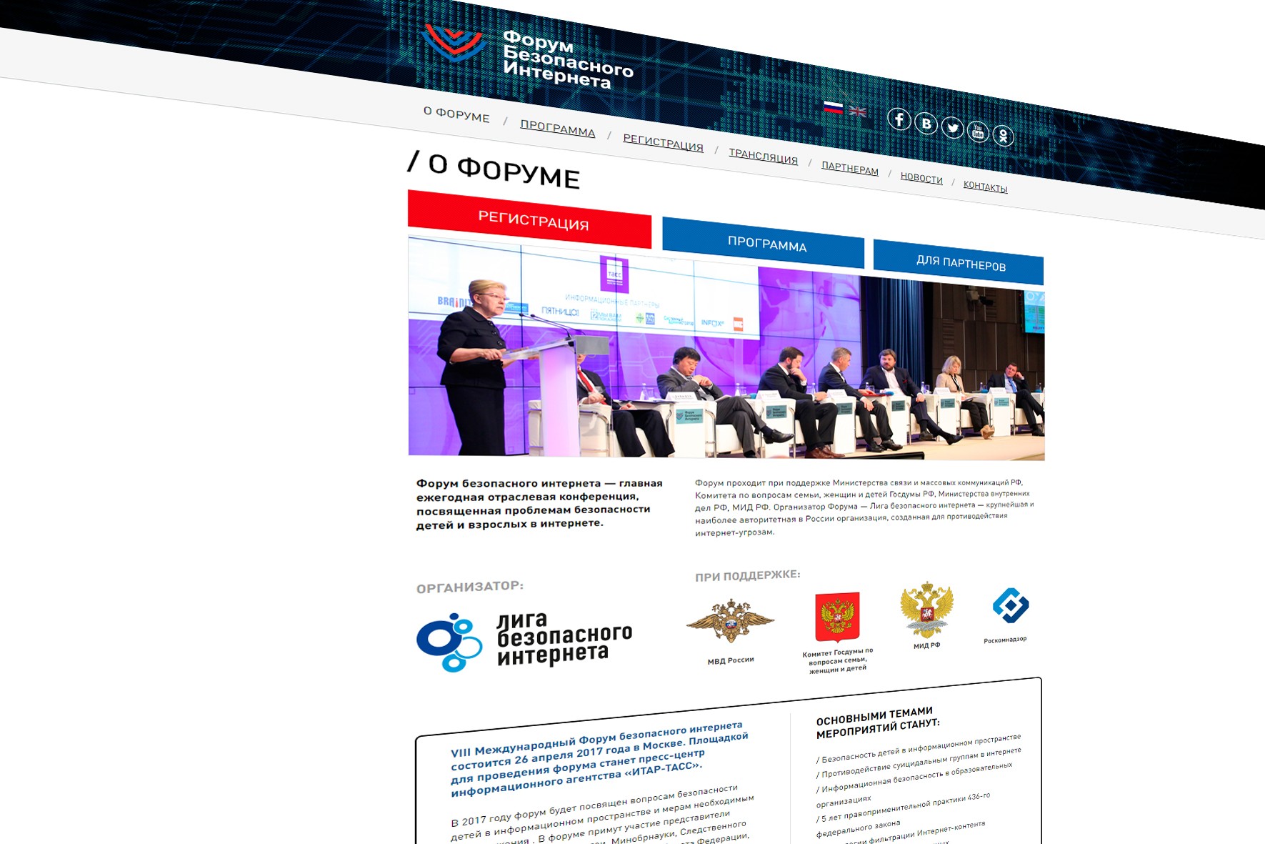 Ведущий форума Давыдов Денис Николаевич – директор Лиги безопасного интернета «Итоги всероссийской акции «Месяц безопасного интернета». Спикерами форума выступили помощник президента РФ Игорь Щеголев, глава Роскомнадзора Александр Жаров, заместитель председателя комитета Совета Федерации по конституционному законодательству Елена Мизулина, заместитель председателя Госдумы Петр Толстой, председатель правления Лиги безопасного интернета Константин Малофеев и генеральный директор Mail.ru Group Борис Добродеев.
