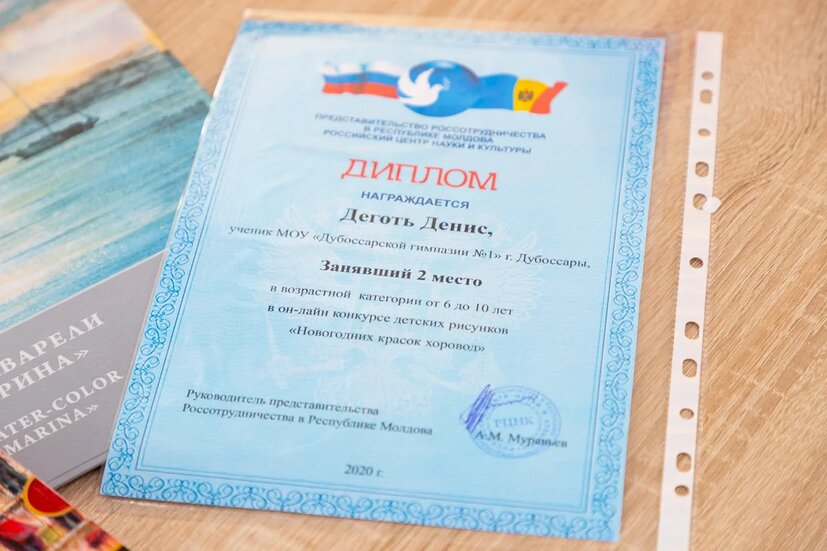 Затем состоялась церемония награждения победителей онлайн-конкурса детских рисунков «Новогодних красок хоровод», который проходил с 8 по 23 декабря. Свои творческие способности в нём демонстрировали дети от 6 до 14 лет как из Приднестровья, так и из Молдовы.