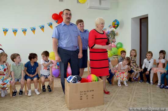Другие маленькие жители столицы получили поздравления от руководства Главного управления внутренних дел Тирасполя. Начальник ГУВД Андрей Кныш пожелал детям подшефного детского сада № 25 «Ладушки» здоровья и радости и вручил им игрушки и спортивный инвентарь. Для гостей ребята подготовили интересную концертную программу.