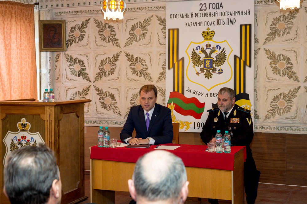 Тирасполь, 12 октября. /ИА «Новости Приднестровья"/. Президент Евгений Шевчук встретился с представителями Черноморского казачьего войска, приехавшими в Тирасполь со всей республики. Глава государства подчеркнул, что для Приднестровья казачество всегда было примером того, как можно любить и защищать своё государство. Он также поблагодарил за активную позицию казаков в поддержании стабильности в обществе, воспитании молодёжи, отметив, что они в этом отношении являются хорошим примером для всего общества.