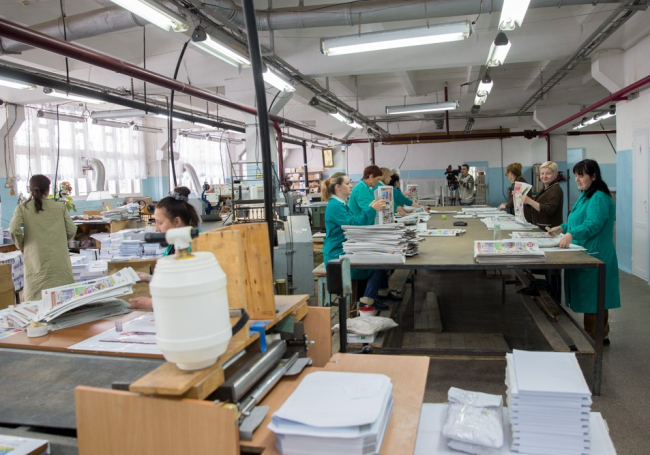 Глава государства ознакомился с производственным процессом предприятия, а также пообщался с его коллективом и руководством ряда государственных печатных СМИ