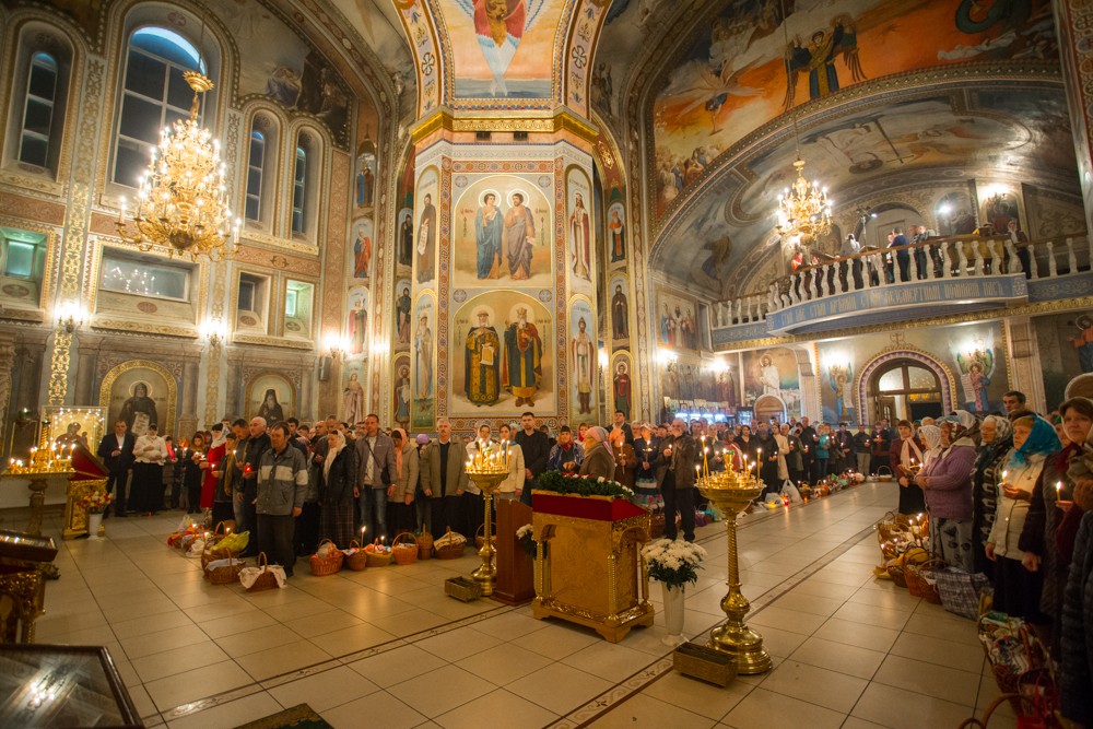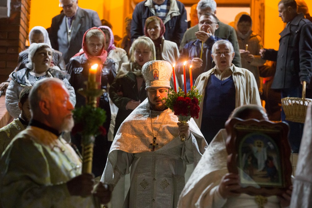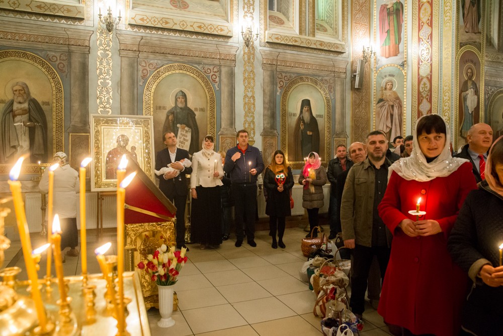 В полночь вокруг Михайло-Архангельского собора под непрерывный звон колоколов был совершён крестный ход с зажженными свечами и лампадами, символизирующими шествие Церкви навстречу воскресшему Спасителю.