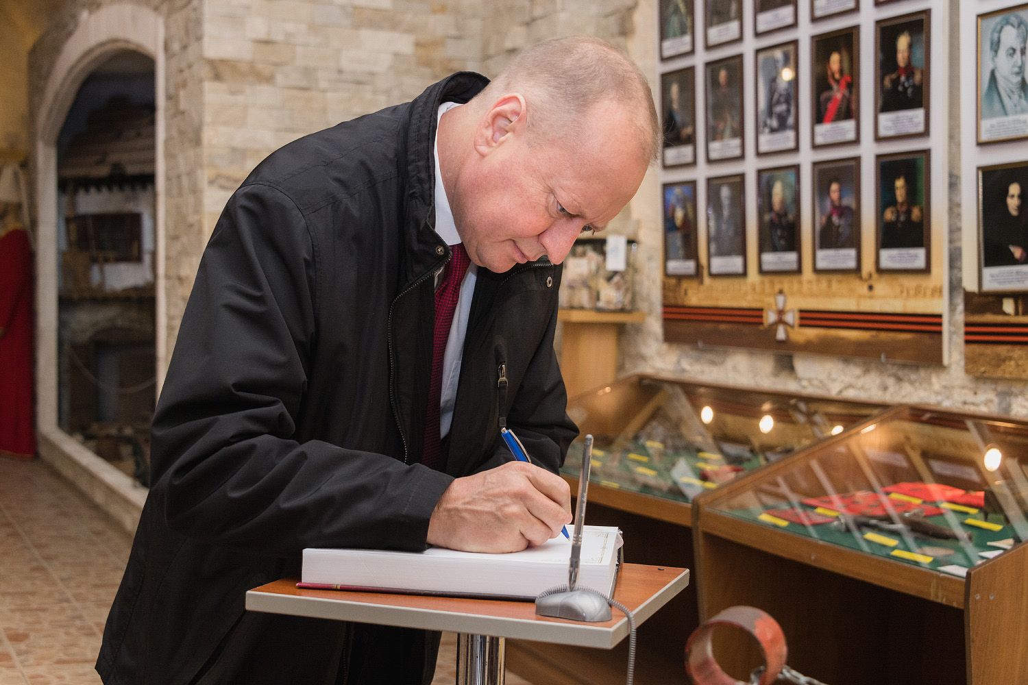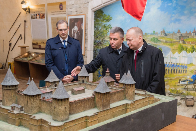 Участники встречи посетили музей крепости и выставочный зал. Виктор Крыжановский отметил оригинальность оформления и просторность помещения. Интересным он нашел решение разместить в центре зала постоянную экспозицию, отражающую героическую военную историю края. Собеседники говорили об удивительных переплетениях истории различных государств и об их современных отношениях, о ценности работы, проводимой для сохранения памяти о прошлом, о развитии туризма в Приднестровье и о перспективах приднестровско-украинского сотрудничества в этом направлении.