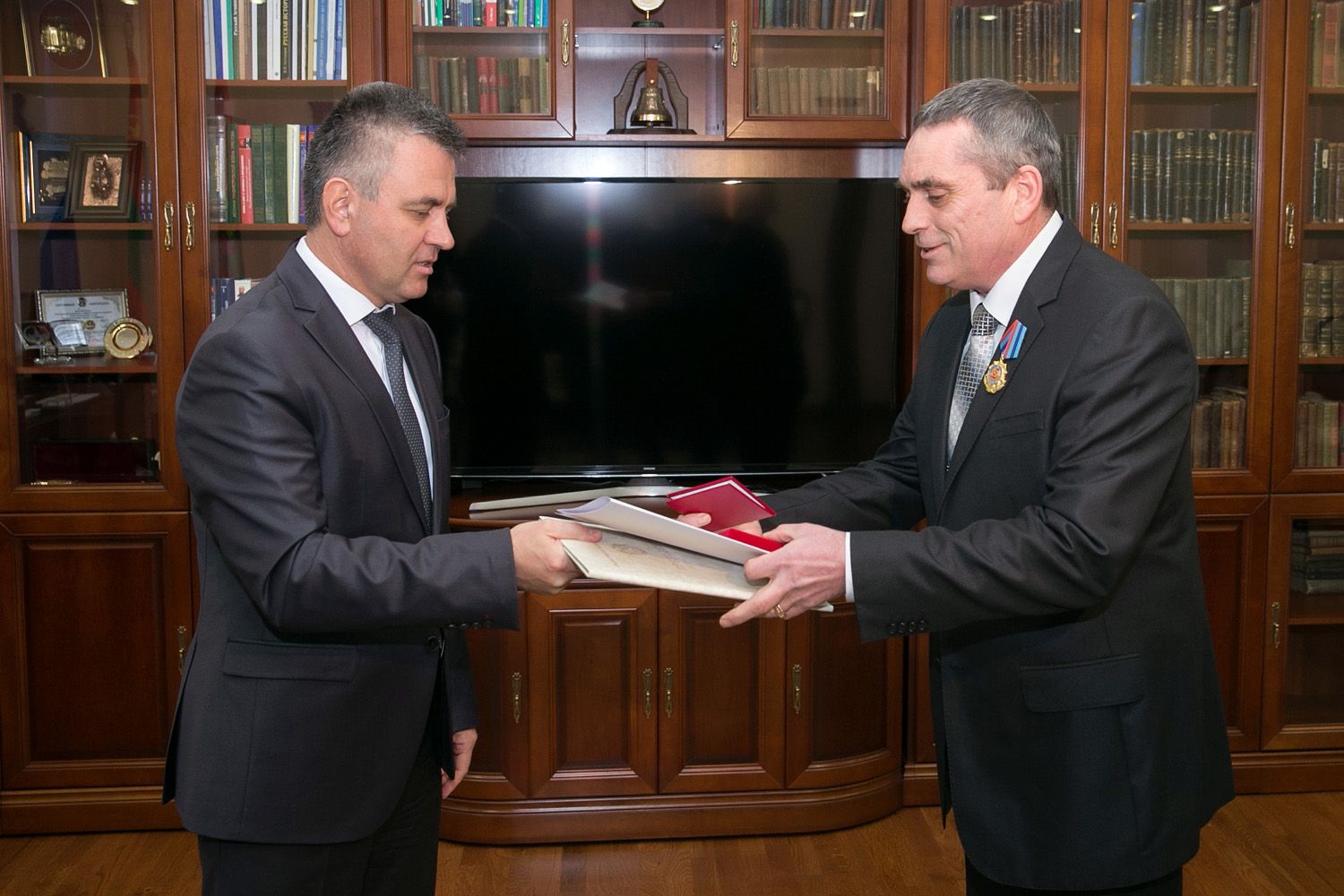 Тирасполь, 27 февраля. /Новости Приднестровья/. Вадим Красносельский поздравил главу Григориопольского района и города Григориополя с 55-летием. За многолетний добросовестный труд, высокие организаторские и профессиональные способности президент наградил Олега Габужу орденом «Трудовая Слава».
