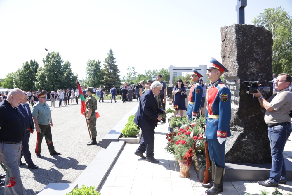 Глава государства, руководители всех ветвей власти, горожане, боевые товарищи, родные и близкие погибших возложили цветы к памятному знаку героев и скорбным обелискам.