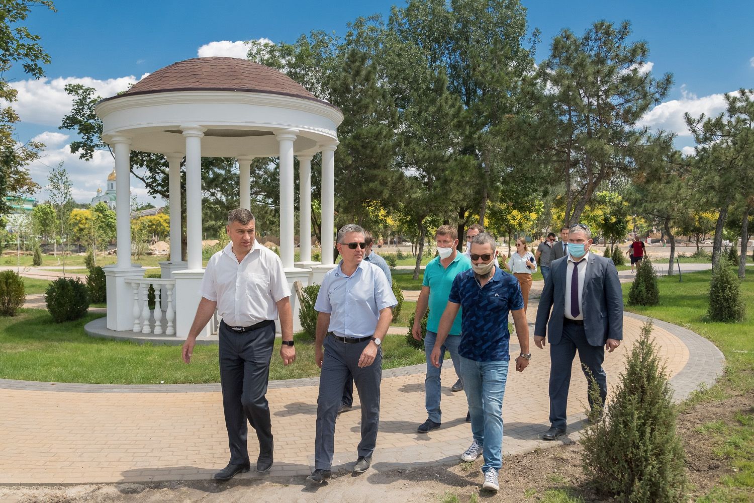 Тирасполь, 2 июля. /Новости Приднестровья/. Екатерининский парк, строительство которого ведется в центре Тирасполя по инициативе главы государства, - один из самых ожидаемых инфраструктурных проектов последних лет. Работы, начатые в 2018 году, близятся к завершению, открытие парка станет символичным подарком к 30-летию республики. Ход строительства проинспектировал Вадим Красносельский совместно с главой Тирасполя Олегом Довгополом. К рабочему разговору приглашены и руководители подрядных организаций, отвечающих за отдельные объекты проекта, сообщает президентская пресс-служба.