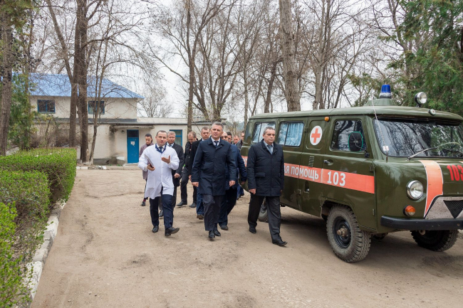 Григориополь, 26 марта. /Новости Приднестровья/. Осматривая нуждающиеся в финансировании социально значимые объекты Григориопольского района, участники выездного совещания во главе с Президентом говорили в том числе и о здравоохранении, отмечая, что развивать его сеть необходимо не только в городах, но и в сельской местности. В селах и поселках района функционируют 9 врачебных амбулаторий и столько же ФАПов. Службу скорой медицинской помощи представляют пять бригад: три при ЦРБ и по одной в Малаештах и Токмазее.