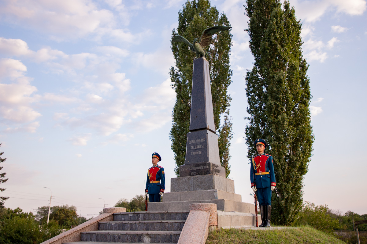 После непродолжительного митинга и литии участники мероприятия возложили цветы к Православному кресту и многочисленной колонной направились крестным ходом по улицам Бендер. Остановились у памятника Русской воинской славы. Обелиск, выполненный в виде орла с распростертыми крыльями, имеет непосредственное отношение к Подольскому полку: на памятной плите высечена надпись «Доблестным предкам – потомки. От 55-го Подольского пехотного полка».