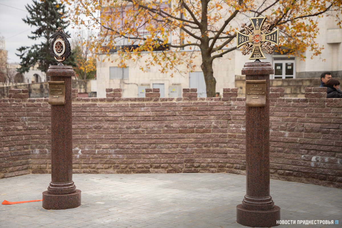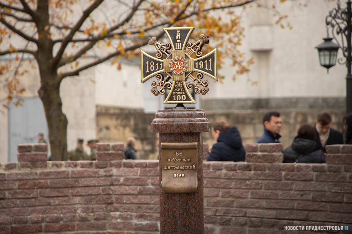 06 Ноя.., 2021, 15:09Тирасполь, 6 ноября. /Новости Приднестровья/. Памятные знаки в честь Алексопольского и Полоцкого мушкетерских, 55-го Подольского и 56-го Житомирского пехотных полков русской армии были открыты сегодня в Екатерининском парке Тирасполя. Они установлены по инициативе Президента ПМР Вадима Красносельского при финансовой поддержке ЗАО «Интерцентр Люкс».