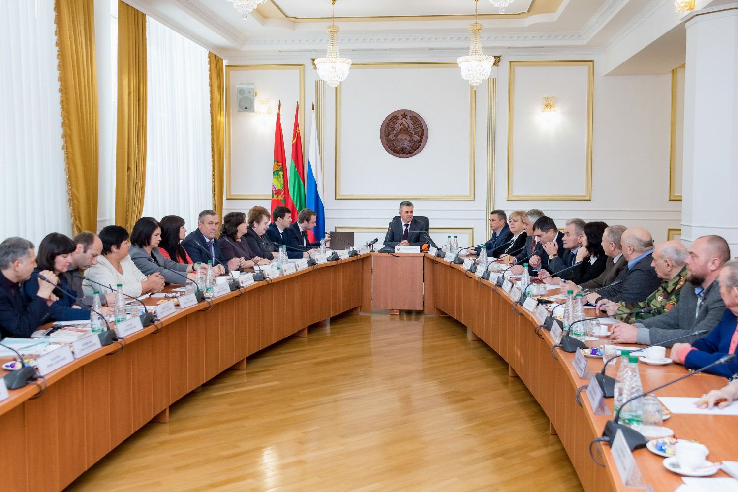 Тирасполь, 19 декабря. /Новости Приднестровья/. Встреча Вадима Красносельского с представителями общественных организаций и объединений Приднестровья состоялась в Доме официальных приемов. В ней также приняли участие председатель Правительства ПМР Александр Мартынов, руководители ряда министерств, депутаты Верховного Совета.