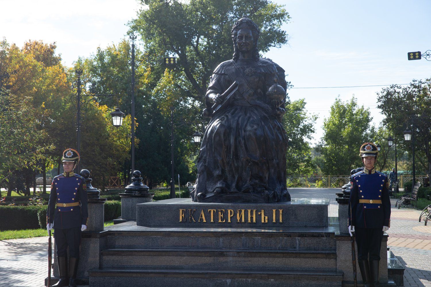 Сам памятник Екатерине II появился в Тирасполе в 2020 году по инициативе Президента ПМР Вадима Красносельского. Место расположения монумента выбрано не случайно. Бронзовая скульптура находится в сквере, носящем имя Франца де Волана – архитектора, спроектировавшего крепость. У его бюста в день города тоже россыпь гвоздик.