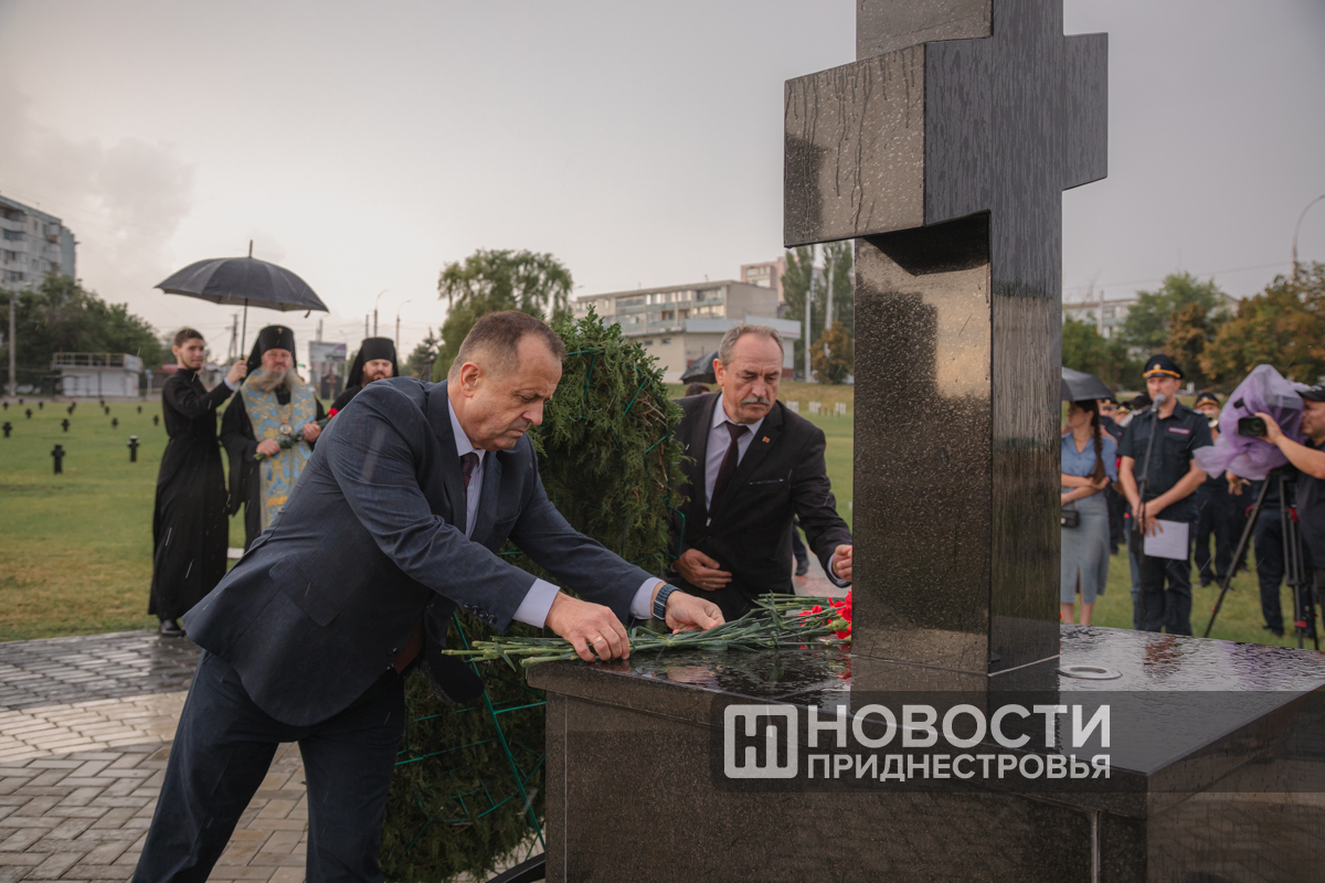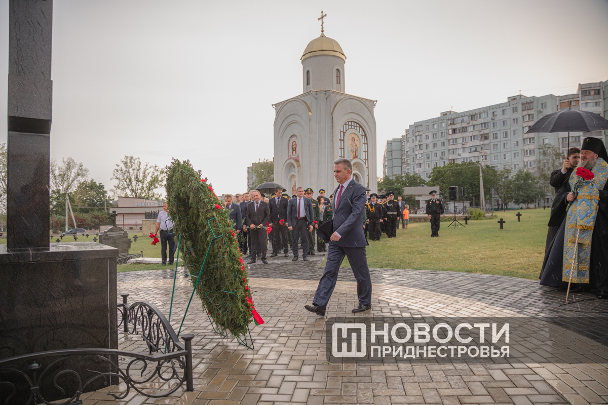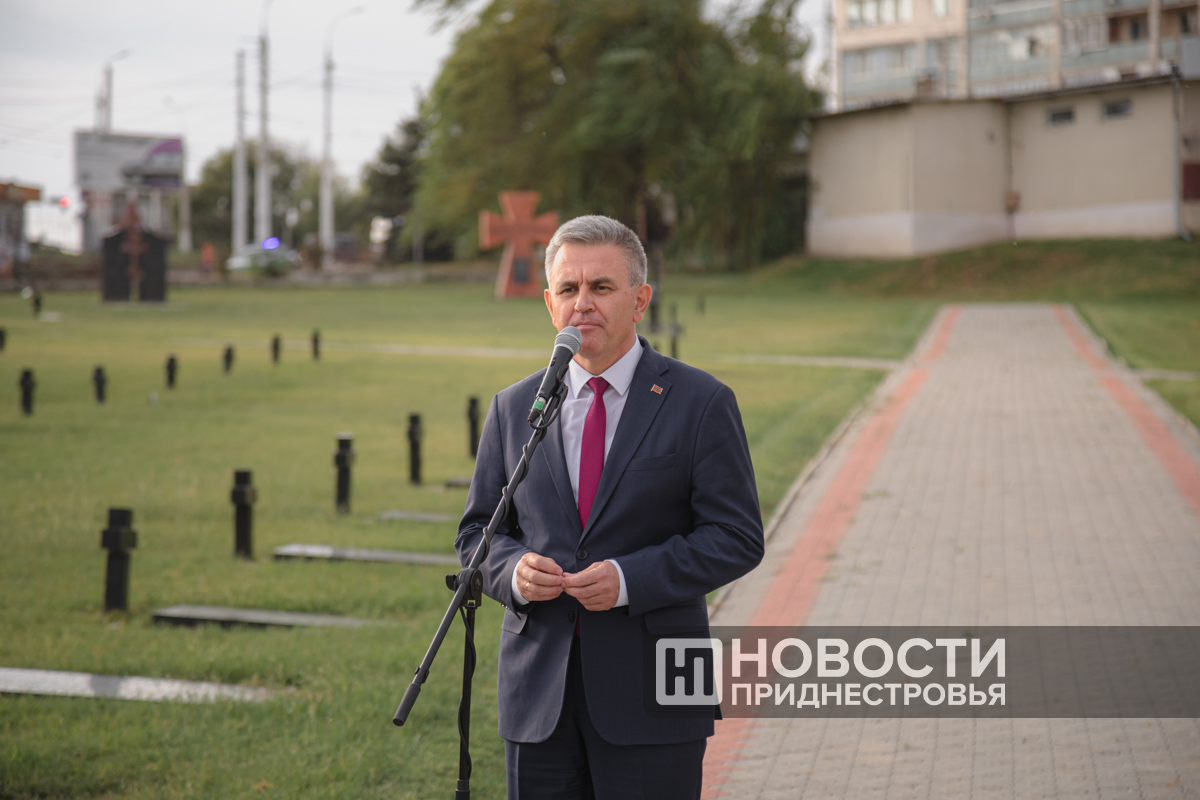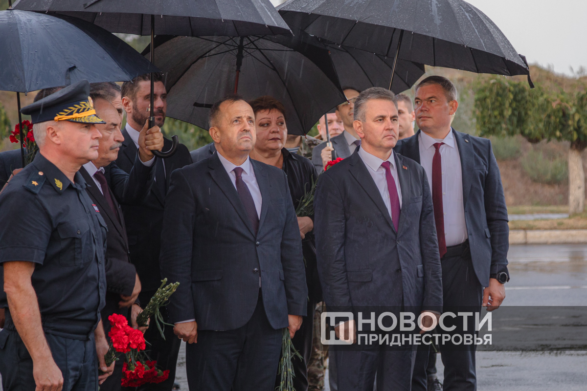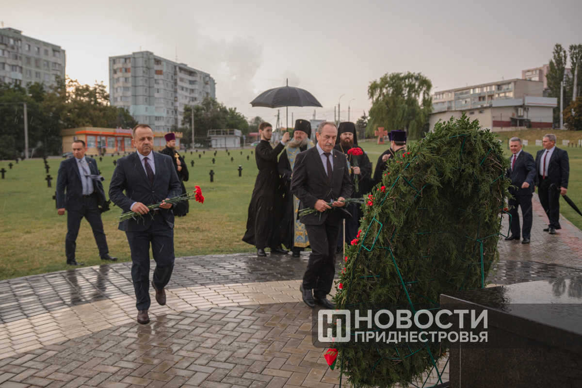 Сегодня глава государства, руководители Правительства и Верховного Совета прибыли на Бендерский военный историко-мемориальный комплекс, где захоронены бойцы российской армии, погибшие в войнах XVIII-XX веков.
