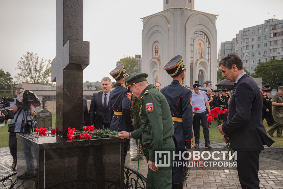 Участники полкового праздника возложили цветы к Православному кресту, установленному в центре мемориального комплекса. Далее процессия последовала к Казачьему кресту и памятнику защитникам Приднестровья, погибшим в 1992 году в результате военной агрессии Молдовы.