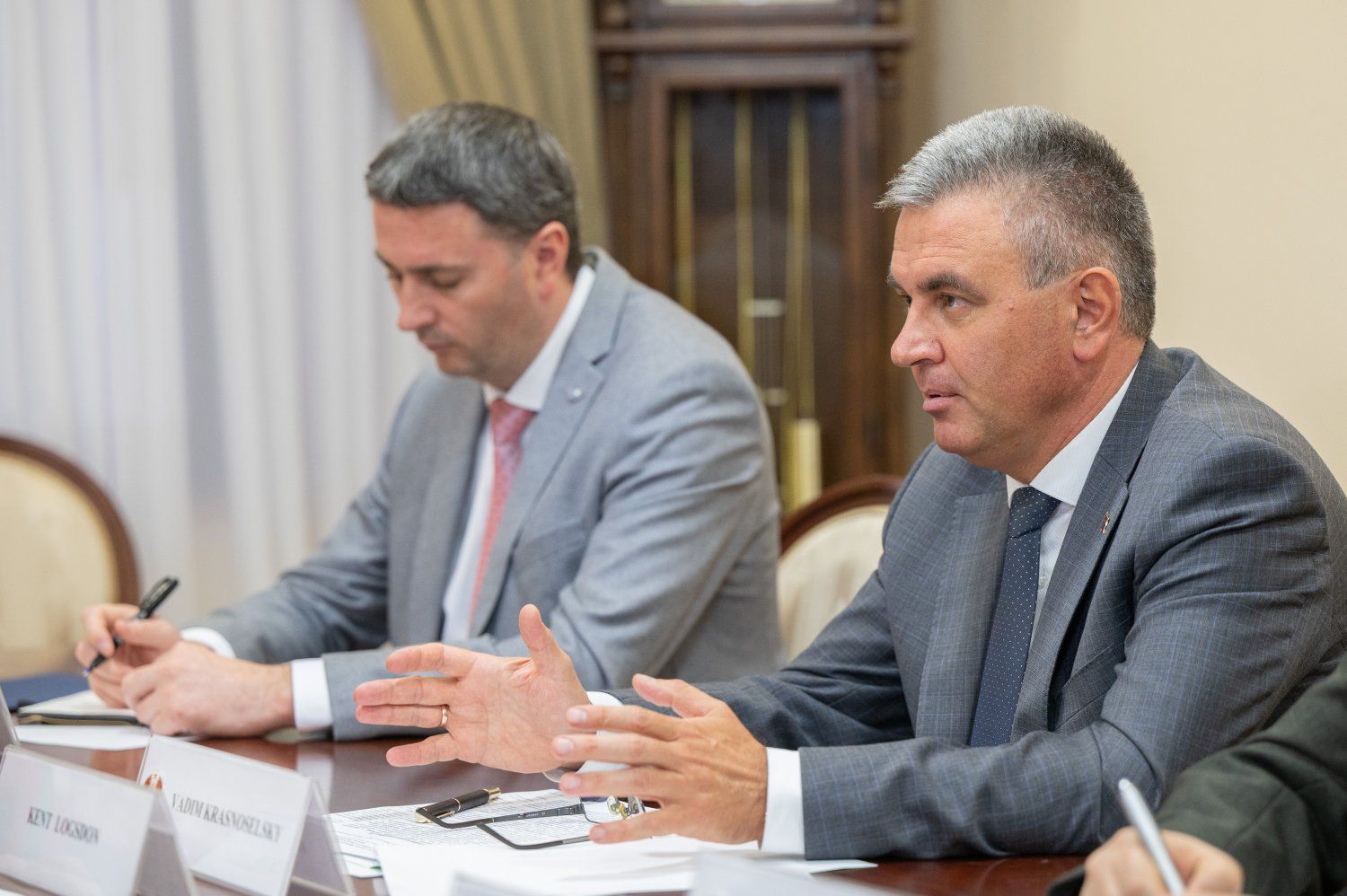 Обозначая повестку сегодняшней встречи, собеседники акцентировали внимание на ситуации в Приднестровье и по периметру республики, переговорном процессе, обеспечении мира и безопасности, помощи гражданам Украины, временно находящимся в Приднестровье, положении дел в экономике. Гость рассказал, что первую половину дня посвятил общению с жителями и гостями республики: встречался с сельхозпроизводителями, побывал в Центре временного пребывания иностранных граждан (отметил высокий уровень оказываемой им поддержки), общался с представителями еврейской общины.