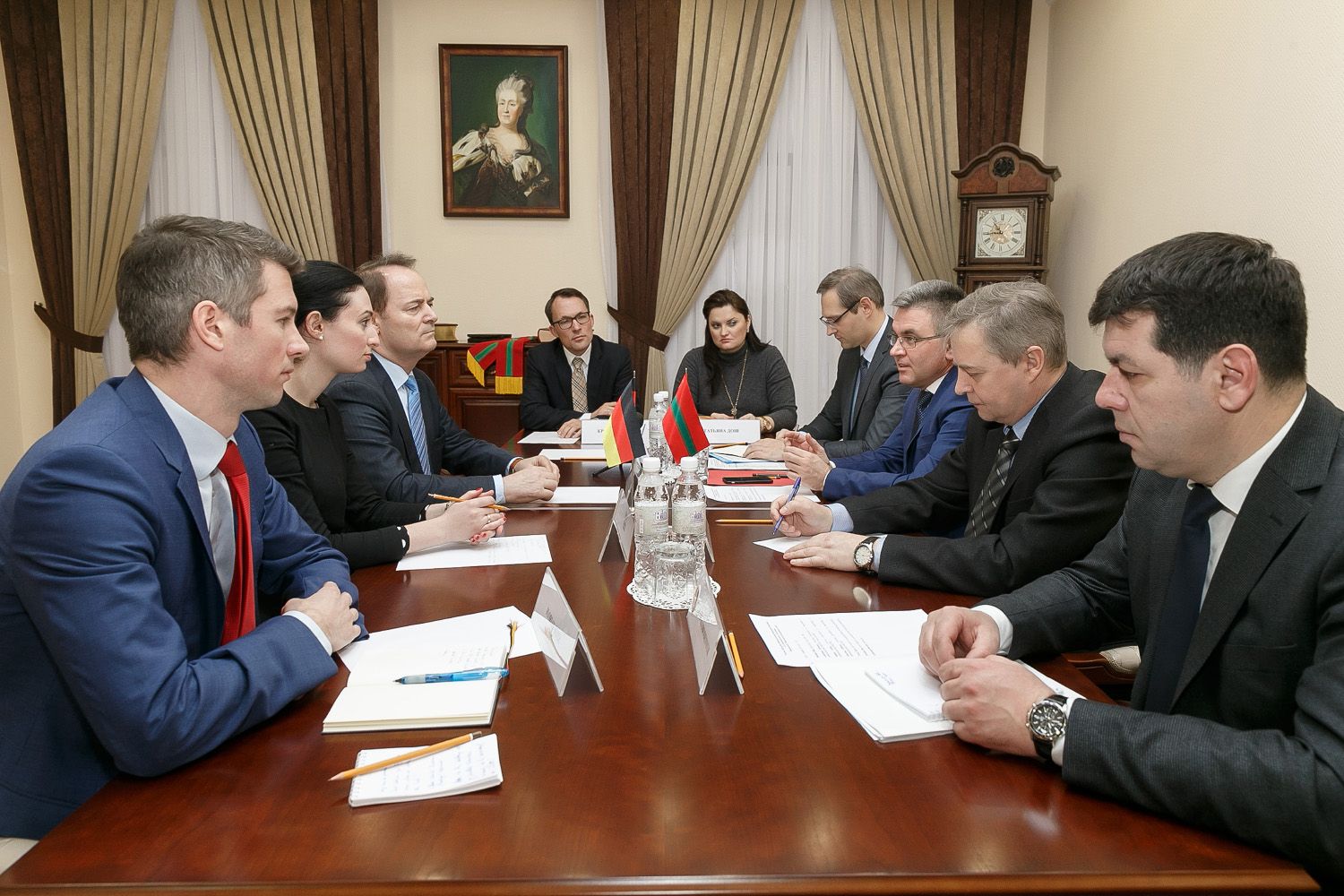 Приветствуя немецких гостей, Вадим Красносельский обратил их внимание на традиционно дружеские отношения, складывающиеся между Приднестровьем и Германией. Президент напомнил о немецких поселениях, которые в прошлом располагались на территории ПМР, и проинформировал собеседников о том, что в республике проживают более 1 200 этнических немцев (перепись 2015 года зафиксировала число 1 276).