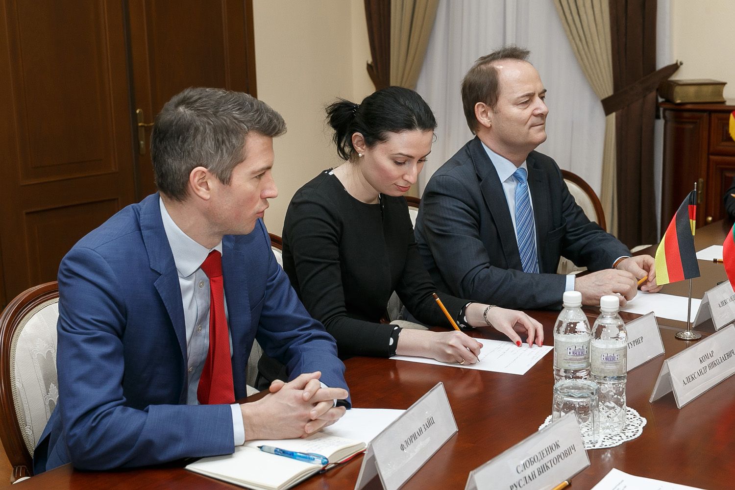 В ходе встречи речь шла о широком спектре приднестровско-немецких взаимоотношений, гуманитарных проектах, реализуемых германской стороной в Приднестровье, а также о вопросах текущего взаимодействия с Посольством ФРГ. Представитель Посольства Флориан Зайц со словами благодарности, адресованными руководству страны, упомянул открытие в Тирасполе памятника жертвам Холокоста.