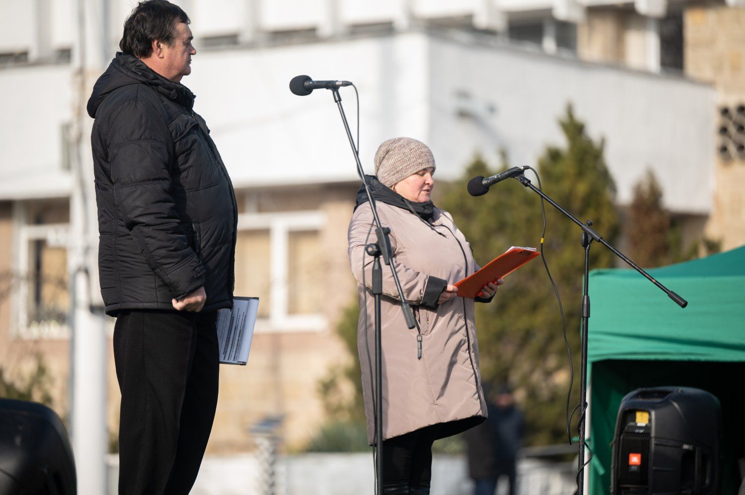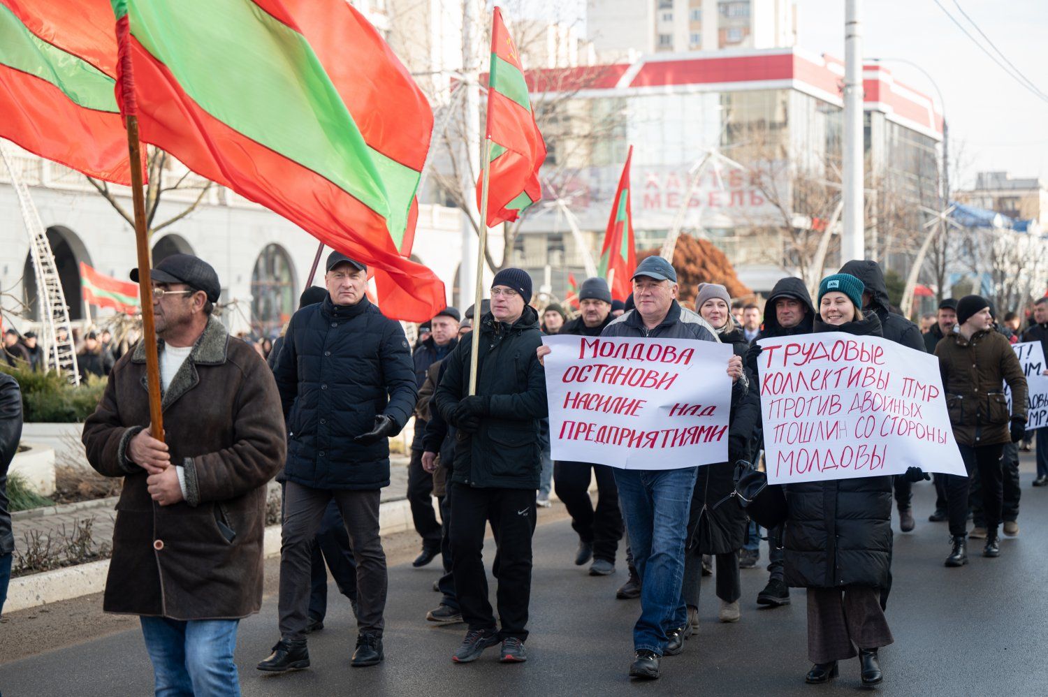 На транспарантах и плакатах – отношение жителей Приднестровья к произволу Молдовы, экономическому давлению, нарушению прав и свобод граждан ПМР. Шествие продолжил митинг, инициаторами и организаторами которого выступили Федерация профсоюзов Приднестровья, СПАПП и ОСТК. Массовое мероприятие носило исключительно мирный, социально значимый характер. Участие в нем принял Президент Приднестровской Молдавской Республики Вадим Красносельский.