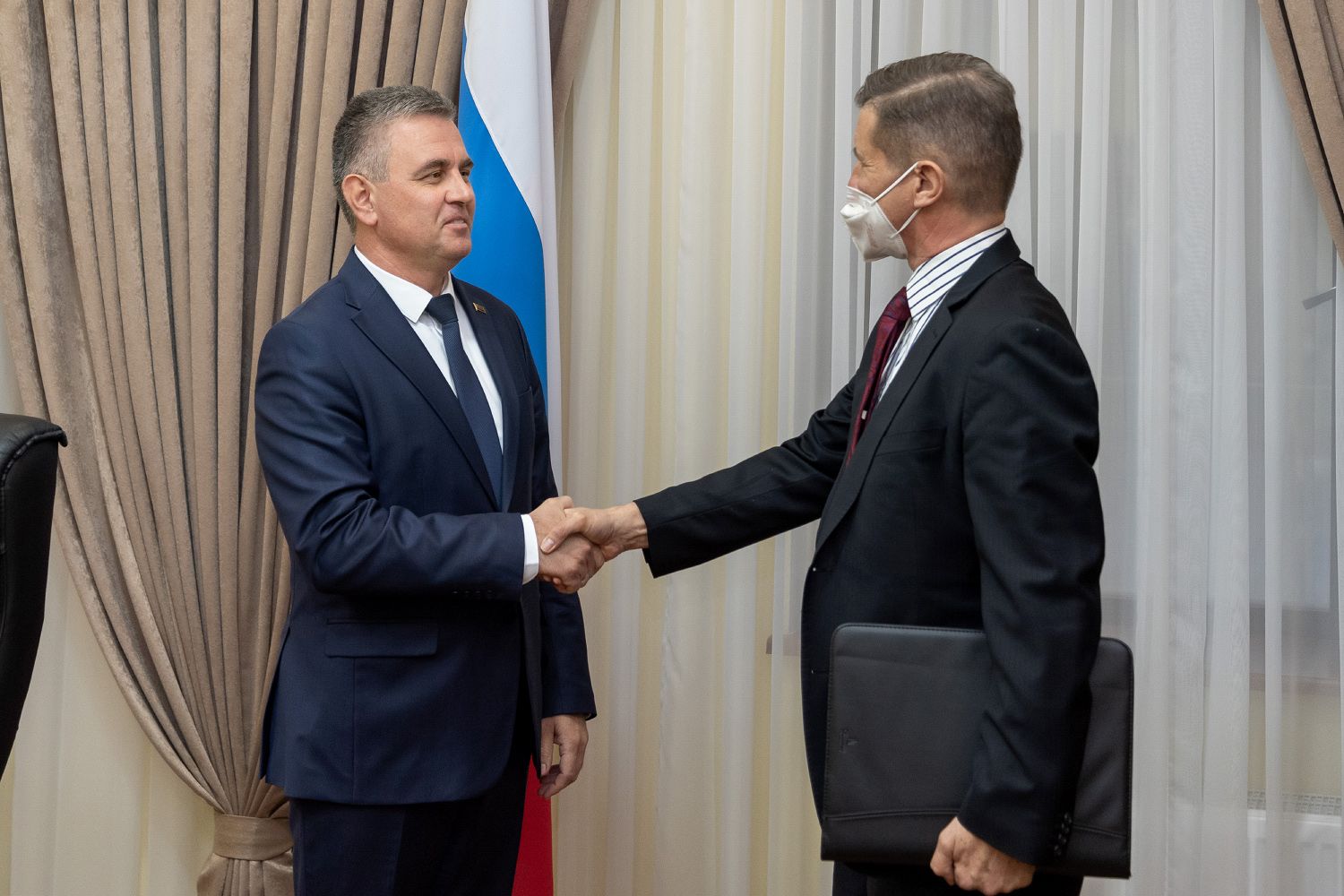 Тирасполь, 20 апреля. /Новости Приднестровья/. Президент ПМР Вадим Красносельский принял Чрезвычайного и Полномочного Посла Её Величества Королевы Соединенного Королевства Великобритании и Северной Ирландии Стивена Фишера. Рабочая встреча прошла в Администрации Президента ПМР. К ней присоединились министр иностранных дел ПМР Виталий Игнатьев и Военный атташе Великобритании Роб Холл.
